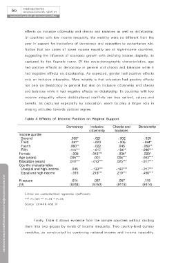 effects on inclusive citizenship and checks and balances as well as dictatorship.