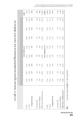 ประมาณการโดยคณะผู้ศึกษา (กรณีฐาน) 2567 2566 หน่วย: พันล้านบาท 3,243 3,107 3,794 3,639 -551 -532 307 287 -245 -245 11,027 10,305 หน่วย: ร้อยละต่อ GDP 15.37 15.42 17.98 18.05 -2.61 -2.64 1.45 1.42 -1.16 -1.22 52.26 51.13
