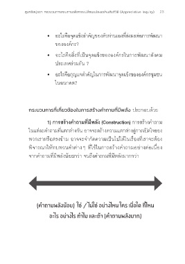กระบวนกำรที่เกี่ยวข้องในกำรสร้ำงค�ำถำมที่มีพลัง ประกอบด้วย