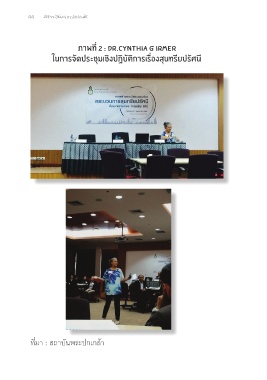 44 สุนทรียปุจฉา: กระบวนการสอบถามเพื่อการเปลี่ยนแปลงอย่างสันติวิธี (Appreciative Inquiry) ภาพที่ 2 : Dr.Cynthia G Irmer ในำการจัดประชุมเชิงปฏิบัติการเรื่องสุนำทรียปรัศนำี ที่มา : สถาบันพระปกเกล้า inside_ cc.indd 44 14/12/2563 19:42:33