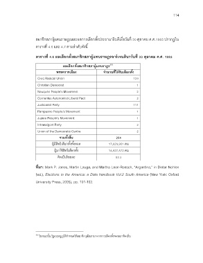 ตารางที่ 4.6 ผลเลือกตั้งสมาชิกสภาผู้แทนราษฎรอาร์เจนตินาวันที่ 30 ตุลาคม ค.ศ. 1983