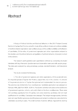 Election in Suphan Buri Province aimed to study 1) the political climate and political activities
