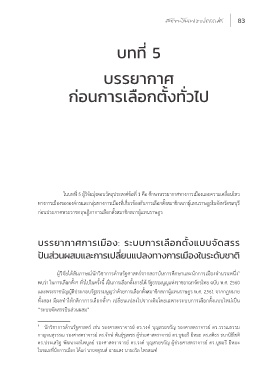 ในบทที่ 5 ผู้วิจัยมุ่งตอบวัตถุประสงค์ข้อที่ 1 คือ ศึกษาบรรยากาศทางการเมืองและความเคลื่อนไหว