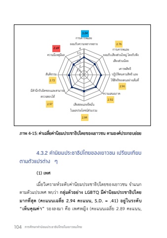 %u0e20%u0e32%u0e1e 4-15: %u0e04%u0e48%u0e32%u0e40%u0e09%u0e25%u0e35%u0e48%u0e22%u0e04%u0e48%u0e32%u0e19%u0e34%u0e22%u0e21%u0e1b%u0e23%u0e30%u0e0a%u0e32%u0e18%u0e34%u0e1b%u0e44%u0e15%u0e22%u0e02%u0e2d%u0e07%u0e40%u0e22%u0e32%u0e27%u0e0a%u0e19 %u0e15%u0e32%u0e21%u0e2d%u0e07%u0e04%u0e4c%u0e1b%u0e23%u0e30%u0e01%u0e2d%u0e1a%u0e22%u0e48%u0e2d%u0e223.042.762.962.922.842.972.722.6911.522.533.54%u0e01%u0e32%u0e23%u0e40%u0e04%u0e32%u0e23%u0e1e%u0e41%u0e25%u0e30%u0e22%u0e2d%u0e21%u0e23%u0e31%u0e1a%u0e04%u0e27%u0e32%u0e21%u0e2b%u0e25%u0e32%u0e01%u0e2b%u0e25%u0e32%u0e22%u0e01%u0e32%u0e23%u0e40%u0e04%u0e32%u0e23%u0e1e%u0e41%u0e25%u0e30%u0e22%u0e2d%u0e21%u0e23%u0e31%u0e1a%u0e40%u0e2a%u0e35%u0e22%u0e07%u0e2a%u0e48%u0e27%u0e19%u0e43%u0e2b%u0e0d%u0e48 %u0e42%u0e14%u0e22%u0e23%u0e31%u0e1a%u0e1f%u0e31%u0e07%u0e40%u0e2a%u0e35%u0e22%u0e07%u0e2a%u0e48%u0e27%u0e19%u0e19%u0e49%u0e2d%u0e22%u0e40%u0e04%u0e32%u0e23%u0e1e%u0e2a%u0e34%u0e17%u0e18%u0e34 %u0e1b%u0e0f%u0e34%u0e1a%u0e31%u0e15%u0e34%u0e15%u0e19%u0e15%u0e32%u0e21%u0e2a%u0e34%u0e17%u0e18%u0e34 %u0e41%u0e25%u0e30%u0e43%u0e0a%u0e49%u0e2a%u0e34%u0e17%u0e18%u0e34%u0e02%u0e2d%u0e07%u0e15%u0e19%u0e2d%u0e22%u0e48%u0e32%u0e07%u0e40%u0e15%u0e47%u0e21%u0e17%u0e35%u0e48%u0e04%u0e27%u0e32%u0e21%u0e40%u0e2a%u0e21%u0e2d%u0e20%u0e32%u0e04%u0e40%u0e2a%u0e35%u0e22%u0e2a%u0e25%u0e30%u0e41%u0e25%u0e30%u0e22%u0e36%u0e14%u0e21%u0e31%u0e48%u0e19%u0e43%u0e19%u0e1c%u0e25%u0e1b%u0e23%u0e30%u0e42%u0e22%u0e0a%u0e19%u0e4c%u0e2a%u0e48%u0e27%u0e19%u0e23%u0e27%u0e21%u0e21%u0e35%u0e2a %u0e32%u0e19%u0e36%u0e01%u0e23%u0e31%u0e1a%u0e1c%u0e34%u0e14%u0e0a%u0e2d%u0e1a%u0e41%u0e25%u0e30%u0e2a%u0e32%u0e21%u0e32%u0e23%u0e16%u0e15%u0e23%u0e27%u0e08%u0e2a%u0e2d%u0e1a%u0e44%u0e14%u0e49%u0e2a%u0e31%u0e19%u0e15%u0e34%u0e18%u0e23%u0e23%u0e21%u0e04%u0e27%u0e32%u0e21%u0e21%u0e35%u0e40%u0e2b%u0e15%u0e38%u0e21%u0e35%u0e1c%u0e25104 %u0e01%u0e32%u0e23%u0e28%u0e36%u0e01%u0e29%u0e32%u0e04%u0e48%u0e32%u0e19%u0e34%u0e22%u0e21%u0e1b%u0e23%u0e30%u0e0a%u0e32%u0e18%u0e34%u0e1b%u0e44%u0e15%u0e22%u0e43%u0e19%u0e40%u0e22%u0e32%u0e27%u0e0a%u0e19%u0e44%u0e17%u0e22%u0e20%u0e32%u0e1e 4-15: %u0e04%u0e48%u0e32%u0e40%u0e09%u0e25%u0e35%u0e48%u0e22%u0e04%u0e48%u0e32%u0e19%u0e34%u0e22%u0e21%u0e1b%u0e23%u0e30%u0e0a%u0e32%u0e18%u0e34%u0e1b%u0e44%u0e15%u0e22%u0e02%u0e2d%u0e07%u0e40%u0e22%u0e32%u0e27%u0e0a%u0e19 %u0e15%u0e32%u0e21%u0e2d%u0e07%u0e04%u0e4c%u0e1b%u0e23%u0e30%u0e01%u0e2d%u0e1a%u0e22%u0e48%u0e2d%u0e224.3.2 %u0e04%u0e48%u0e32%u0e19%u0e34%u0e22%u0e21%u0e1b%u0e23%u0e30%u0e0a%u0e32%u0e18%u0e34%u0e1b%u0e44%u0e15%u0e22%u0e02%u0e2d%u0e07%u0e40%u0e22%u0e32%u0e27%u0e0a%u0e19 %u0e40%u0e1b%u0e23%u0e35%u0e22%u0e1a%u0e40%u0e17%u0e35%u0e22%u0e1a%u0e15%u0e32%u0e21%u0e15%u0e31%u0e27%u0e41%u0e1b%u0e23%u0e15%u0e48%u0e32%u0e07 %u0e46 (1) %u0e40%u0e1e%u0e28%u0e40%u0e21%u0e37%u0e48%u0e2d%u0e27%u0e34%u0e40%u0e04%u0e23%u0e32%u0e30%u0e2b%u0e4c%u0e23%u0e30%u0e14%u0e31%u0e1a%u0e04%u0e48%u0e32%u0e19%u0e34%u0e22%u0e21%u0e1b%u0e23%u0e30%u0e0a%u0e32%u0e18%u0e34%u0e1b%u0e44%u0e15%u0e22%u0e02%u0e2d%u0e07%u0e40%u0e22%u0e32%u0e27%u0e0a%u0e19 %u0e08%ufffd%u0e33%u0e41%u0e19%u0e01%u0e15%u0e32%u0e21%u0e15%u0e31%u0e27%u0e41%u0e1b%u0e23%u0e40%u0e1e%u0e28 %u0e1e%u0e1a%u0e27%u0e48%u0e32 %u0e01%u0e25%u0e38%u0e48%u0e21%u0e15%u0e31%u0e27%u0e2d%u0e22%u0e48%u0e32%u0e07 LGBTQ %u0e21%u0e35%u0e04%u0e48%u0e32%u0e19%u0e34%u0e22%u0e21%u0e1b%u0e23%u0e30%u0e0a%u0e32%u0e18%u0e34%u0e1b%u0e44%u0e15%u0e22%u0e21%u0e32%u0e01%u0e17%u0e35%u0e48%u0e2a%u0e38%u0e14 (%u0e04%u0e30%u0e41%u0e19%u0e19%u0e40%u0e09%u0e25%u0e35%u0e48%u0e22 2.94 %u0e04%u0e30%u0e41%u0e19%u0e19, S.D. = .41) %u0e2d%u0e22%u0e39%u0e48%u0e43%u0e19%u0e23%u0e30%u0e14%u0e31%u0e1a %u201c%u0e40%u0e2b%u0e47%u0e19%u0e04%u0e38%u0e13%u0e04%u0e48%u0e32%u201d %u0e23%u0e2d%u0e07%u0e25%u0e07%u0e21%u0e32 %u0e04%u0e37%u0e2d %u0e40%u0e1e%u0e28%u0e2b%u0e0d%u0e34%u0e07 (%u0e04%u0e30%u0e41%u0e19%u0e19%u0e40%u0e09%u0e25%u0e35%u0e48%u0e22 2.89 %u0e04%u0e30%u0e41%u0e19%u0e19,