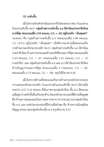 %u0e20%u0e32%u0e1e 4-20: %u0e04%u0e48%u0e32%u0e19%u0e34%u0e22%u0e21%u0e1b%u0e23%u0e30%u0e0a%u0e32%u0e18%u0e34%u0e1b%u0e44%u0e15%u0e22 %u0e08 %u0e32%u0e41%u0e19%u0e01%u0e15%u0e32%u0e21%u0e15%u0e31%u0e27%u0e41%u0e1b%u0e23%u0e23%u0e30%u0e14%u0e31%u0e1a%u0e0a%u0e31%u0e49%u0e19%u0e04%u0e48%u0e32%u0e19%u0e34%u0e22%u0e21%u0e1b%u0e23%u0e30%u0e0a%u0e32%u0e18%u0e34%u0e1b%u0e44%u0e15%u0e22 %u0e14%u0e49%u0e32%u0e19%u0e04%u0e32%u0e23%u0e27%u0e18%u0e23%u0e23%u0e21 %u0e14%u0e49%u0e32%u0e19%u0e2a%u0e32%u0e21%u0e31%u0e04%u0e04%u0e35%u0e18%u0e23%u0e23%u0e21 %u0e14%u0e49%u0e32%u0e19%u0e1b%u0e31%u0e0d%u0e0d%u0e32%u0e18%u0e23%u0e23%u0e21%u0e21.1 2.81 2.84 2.84 2.69%u0e21.2 2.82 2.84 2.88 2.69%u0e21.3 2.86 2.91 2.91 2.7%u0e21.4 2.85 2.9 2.9 2.69%u0e21.5 2.89 2.94 2.93 2.73%u0e21.6 2.95 3.03 3.01 2.7322.533.54%u0e04%u0e48%u0e32%u0e40%u0e09%u0e25%u0e35%u0e48%u0e22%u0e04%u0e48%u0e32%u0e19%u0e34%u0e22%u0e21%u0e1b%u0e23%u0e30%u0e0a%u0e32%u0e18%u0e34%u0e1b%u0e44%u0e15%u0e22110 %u0e01%u0e32%u0e23%u0e28%u0e36%u0e01%u0e29%u0e32%u0e04%u0e48%u0e32%u0e19%u0e34%u0e22%u0e21%u0e1b%u0e23%u0e30%u0e0a%u0e32%u0e18%u0e34%u0e1b%u0e44%u0e15%u0e22%u0e43%u0e19%u0e40%u0e22%u0e32%u0e27%u0e0a%u0e19%u0e44%u0e17%u0e22(3) %u0e23%u0e30%u0e14%u0e31%u0e1a%u0e0a%u0e31%u0e49%u0e19%u0e40%u0e21%u0e37%u0e48%u0e2d%u0e27%u0e34%u0e40%u0e04%u0e23%u0e32%u0e30%u0e2b%u0e4c%u0e23%u0e30%u0e14%u0e31%u0e1a%u0e04%u0e48%u0e32%u0e19%u0e34%u0e22%u0e21%u0e1b%u0e23%u0e30%u0e0a%u0e32%u0e18%u0e34%u0e1b%u0e44%u0e15%u0e22%u0e02%u0e2d%u0e07%u0e40%u0e22%u0e32%u0e27%u0e0a%u0e19 %u0e08%ufffd%u0e33%u0e41%u0e19%u0e01%u0e15%u0e32%u0e21%u0e15%u0e31%u0e27%u0e41%u0e1b%u0e23%u0e23%u0e30%u0e14%u0e31%u0e1a%u0e0a%u0e31%u0e49%u0e19 %u0e1e%u0e1a%u0e27%u0e48%u0e32 %u0e01%u0e25%u0e38%u0e48%u0e21%u0e15%u0e31%u0e27%u0e2d%u0e22%u0e48%u0e32%u0e07%u0e23%u0e30%u0e14%u0e31%u0e1a%u0e0a%u0e31%u0e49%u0e19 %u0e21.6 %u0e21%u0e35%u0e04%u0e48%u0e32%u0e19%u0e34%u0e22%u0e21%u0e1b%u0e23%u0e30%u0e0a%u0e32%u0e18%u0e34%u0e1b%u0e44%u0e15%u0e22%u0e21%u0e32%u0e01%u0e17%u0e35%u0e48%u0e2a%u0e38%u0e14 (%u0e04%u0e30%u0e41%u0e19%u0e19%u0e40%u0e09%u0e25%u0e35%u0e48%u0e22 2.95 %u0e04%u0e30%u0e41%u0e19%u0e19, S.D. = .42) %u0e2d%u0e22%u0e39%u0e48%u0e43%u0e19%u0e23%u0e30%u0e14%u0e31%u0e1a %u201c%u0e40%u0e2b%u0e47%u0e19%u0e04%u0e38%u0e13%u0e04%u0e48%u0e32%u201d %u0e23%u0e2d%u0e07%u0e25%u0e07%u0e21%u0e32 %u0e04%u0e37%u0e2d %u0e01%u0e25%u0e38%u0e48%u0e21%u0e15%u0e31%u0e27%u0e2d%u0e22%u0e48%u0e32%u0e07%u0e23%u0e30%u0e14%u0e31%u0e1a%u0e0a%u0e31%u0e49%u0e19 %u0e21.5 (%u0e04%u0e30%u0e41%u0e19%u0e19%u0e40%u0e09%u0e25%u0e35%u0e48%u0e22 2.89 %u0e04%u0e30%u0e41%u0e19%u0e19, S.D =0.41) %u0e2d%u0e22%u0e39%u0e48%u0e43%u0e19%u0e23%u0e30%u0e14%u0e31%u0e1a %u201c%u0e40%u0e2b%u0e47%u0e19%u0e04%u0e38%u0e13%u0e04%u0e48%u0e32%u201d %u0e40%u0e21%u0e37%u0e48%u0e2d%u0e1e%u0e34%u0e08%u0e32%u0e23%u0e13%u0e32%u0e04%u0e48%u0e32%u0e40%u0e09%u0e25%u0e35%u0e48%u0e22%u0e04%u0e30%u0e41%u0e19%u0e19%u0e40%u0e1b%u0e47%u0e19%u0e23%u0e32%u0e22%u0e14%u0e49%u0e32%u0e19%u0e15%u0e32%u0e21%u0e2d%u0e07%u0e04%u0e4c%u0e1b%u0e23%u0e30%u0e01%u0e2d%u0e1a%u0e2b%u0e25%u0e31%u0e01 %u0e1e%u0e1a%u0e27%u0e48%u0e32 %u0e01%u0e25%u0e38%u0e48%u0e21%u0e15%u0e31%u0e27%u0e2d%u0e22%u0e48%u0e32%u0e07%u0e23%u0e30%u0e14%u0e31%u0e1a%u0e0a%u0e31%u0e49%u0e19 %u0e21.6 %u0e21%u0e35%u0e04%u0e48%u0e32%u0e19%u0e34%u0e22%u0e21%u0e1b%u0e23%u0e30%u0e0a%u0e32%u0e18%u0e34%u0e1b%u0e44%u0e15%u0e22 %u0e14%u0e49%u0e32%u0e19%u0e04%u0e32%u0e23%u0e27%u0e18%u0e23%u0e23%u0e21%u0e41%u0e25%u0e30%u0e14%u0e49%u0e32%u0e19%u0e2a%u0e32%u0e21%u0e31%u0e04%u0e04%u0e35%u0e18%u0e23%u0e23%u0e21%u0e21%u0e32%u0e01%u0e17%u0e35%u0e48%u0e2a%u0e38%u0e14 (%u0e04%u0e30%u0e41%u0e19%u0e19%u0e40%u0e09%u0e25%u0e35%u0e48%u0e22 3.03 %u0e04%u0e30%u0e41%u0e19%u0e19, S.D. = .47; %u0e04%u0e30%u0e41%u0e19%u0e19%u0e40%u0e09%u0e25%u0e35%u0e48%u0e22 3.01 %u0e04%u0e30%u0e41%u0e19%u0e19, S.D. = .53 %u0e15%u0e32%u0e21%u0e25%ufffd%u0e33%u0e14%u0e31%u0e1a) %u0e41%u0e25%u0e30 %u0e01%u0e25%u0e38%u0e48%u0e21%u0e15%u0e31%u0e27%u0e2d%u0e22%u0e48%u0e32%u0e07%u0e23%u0e30%u0e14%u0e31%u0e1a%u0e0a%u0e31%u0e49%u0e19 %u0e21.6 %u0e41%u0e25%u0e30 %u0e21.5 %u0e21%u0e35%u0e04%u0e48%u0e32%u0e19%u0e34%u0e22%u0e21%u0e1b%u0e23%u0e30%u0e0a%u0e32%u0e18%u0e34%u0e1b%u0e44%u0e15%u0e22%u0e14%u0e49%u0e32%u0e19%u0e1b%u0e31%u0e0d%u0e0d%u0e32%u0e18%u0e23%u0e23%u0e21%u0e21%u0e32%u0e01%u0e17%u0e35%u0e48%u0e2a%u0e38%u0e14 (%u0e04%u0e30%u0e41%u0e19%u0e19%u0e40%u0e09%u0e25%u0e35%u0e48%u0e22 2.73%u0e04%u0e30%u0e41%u0e19%u0e19, S.D. = .40; %u0e04%u0e30%u0e41%u0e19%u0e19%u0e40%u0e09%u0e25%u0e35%u0e48%u0e22 2.73 %u0e04%u0e30%u0e41%u0e19%u0e19, S.D. = .38) %u0e2a%u0e23%u0e38%u0e1b%u0e44%u0e14%u0e49%u0e14%u0e31%u0e07%u0e20%u0e32%u0e1e 4-20%u0e40%u0e21%u0e37%u0e48%u0e2d%u0e27%u0e34%u0e40%u0e04%u0e23%u0e32%u0e30%u0e2b%u0e4c%u0e04%u0e48%u0e32%u0e40%u0e09%u0e25%u0e35%u0e48%u0e22%u0e04%u0e30%u0e41%u0e19%u0e19%u0e40%u0e1b%u0e47%u0e19%u0e23%u0e32%u0e22%u0e14%u0e49%u0e32%u0e19%u0e15%u0e32%u0e21%u0e2d%u0e07%u0e04%u0e4c%u0e1b%u0e23%u0e30%u0e01%u0e2d%u0e1a%u0e22%u0e48%u0e2d%u0e22 %u0e08%u0e32%u0e01%u0e41%u0e15%u0e48%u0e25%u0e30%u0e2d%u0e07%u0e04%u0e4c%u0e1b%u0e23%u0e30%u0e01%u0e2d%u0e1a%u0e2b%u0e25%u0e31%u0e01 %u0e08%ufffd%u0e33%u0e41%u0e19%u0e01%u0e15%u0e32%u0e21%u0e15%u0e31%u0e27%u0e41%u0e1b%u0e23%u0e23%u0e30%u0e14%u0e31%u0e1a%u0e0a%u0e31%u0e49%u0e19 %u0e1e%u0e1a%u0e27%u0e48%u0e32 %u0e21%u0e35%u0e04%u0e48%u0e32%u0e40%u0e09%u0e25%u0e35%u0e48%u0e22%u0e23%u0e30%u0e2b%u0e27%u0e48%u0e32%u0e07 2.67-3.16 %u0e04%u0e30%u0e41%u0e19%u0e19 %u0e0b%u0e36%u0e48%u0e07%u0e43%u0e19%u0e20%u0e32%u0e1e%u0e23%u0e27%u0e21%u0e01%u0e25%u0e38%u0e48%u0e21%u0e19%u0e31%u0e01%u0e40%u0e23%u0e35%u0e22%u0e19 %u0e0a%u0e31%u0e49%u0e19 %u0e21.6 %u0e21%u0e35%u0e04%u0e30%u0e41%u0e19%u0e19%u0e40%u0e09%u0e25%u0e35%u0e48%u0e22%u0e2a%u0e39%u0e07%u0e01%u0e27%u0e48%u0e32%u0e23%u0e30%u0e14%u0e31%u0e1a%u0e0a%u0e31%u0e49%u0e19%u0e2d%u0e37%u0e48%u0e19%u0e40%u0e01%u0e37%u0e2d%u0e1a%u0e17%u0e38%u0e01%u0e14%u0e49%u0e32%u0e19 %u0e42%u0e14%u0e22%u0e2d%u0e07%u0e04%u0e4c%u0e1b%u0e23%u0e30%u0e01%u0e2d%u0e1a%u0e22%u0e48%u0e2d%u0e22%u0e17%u0e35%u0e