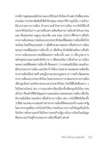 137%u0e04%u0e27%u0e23%u0e21%u0e35%u0e01%u0e32%u0e23%u0e1e%u0e39%u0e14%u0e04%u0e38%u0e22%u0e41%u0e25%u0e30%u0e21%u0e35%u0e2a%u0e48%u0e27%u0e19%u0e23%u0e48%u0e27%u0e21%u0e41%u0e1a%u0e1a%u0e27%u0e34%u0e16%u0e35%u0e1b%u0e23%u0e30%u0e0a%u0e32%u0e18%u0e34%u0e1b%u0e44%u0e15%u0e22 %u0e14%u0e49%u0e32%u0e19%u0e2a%u0e16%u0e32%u0e1a%u0e31%u0e19%u0e2a%u0e37%u0e48%u0e2d%u0e21%u0e27%u0e25%u0e0a%u0e19%u0e04%u0e27%u0e23%u0e40%u0e19%u0e49%u0e19%u0e01%u0e32%u0e23%u0e1b%u0e23%u0e30%u0e0a%u0e32%u0e2a%u0e31%u0e21%u0e1e%u0e31%u0e19%u0e18%u0e4c%u0e43%u0e2b%u0e49%u0e40%u0e02%u0e49%u0e32%u0e16%u0e36%u0e07%u0e01%u0e25%u0e38%u0e48%u0e21%u0e40%u0e22%u0e32%u0e27%u0e0a%u0e19%u0e2b%u0e32%u0e27%u0e34%u0e18%u0e35%u0e01%u0e32%u0e23%u0e08%u0e39%u0e07%u0e43%u0e08%u0e43%u0e19 %u0e01%u0e32%u0e23%u0e40%u0e02%u0e49%u0e32%u0e21%u0e32%u0e21%u0e35%u0e2a%u0e48%u0e27%u0e19%u0e23%u0e48%u0e27%u0e21%u0e17%u0e32%u0e07%u0e01%u0e32%u0e23%u0e40%u0e21%u0e37%u0e2d%u0e07 %u0e14%u0e49%u0e32%u0e19%u0e04%u0e27%u0e32%u0e21%u0e40%u0e02%u0e49%u0e32%u0e43%u0e08%u0e17%u0e32%u0e07%u0e01%u0e32%u0e23%u0e40%u0e21%u0e37%u0e2d%u0e07 %u0e04%u0e27%u0e23%u0e08%u0e31%u0e14%u0e43%u0e2b%u0e49%u0e21%u0e35%u0e40%u0e27%u0e17%u0e35%u0e1b%u0e23%u0e30%u0e0a%u0e32%u0e18%u0e34%u0e1b%u0e44%u0e15%u0e22%u0e43%u0e19%u0e01%u0e32%u0e23 %u0e41%u0e25%u0e01%u0e40%u0e1b%u0e25%u0e35%u0e48%u0e22%u0e19%u0e04%u0e27%u0e32%u0e21%u0e04%u0e34%u0e14%u0e40%u0e2b%u0e47%u0e19%u0e17%u0e32%u0e07%u0e01%u0e32%u0e23%u0e40%u0e21%u0e37%u0e2d%u0e07%u0e2a%ufffd%u0e33%u0e2b%u0e23%u0e31%u0e1a%u0e40%u0e22%u0e32%u0e27%u0e0a%u0e19 %u0e41%u0e25%u0e30 %u0e02%u0e49%u0e2d%u0e40%u0e2a%u0e19%u0e2d%u0e02%u0e2d%u0e07 %u0e13%u0e10%u0e21%u0e19 %u0e2b%u0e21%u0e27%u0e01%u0e09%u0e34%u0e21 %u0e41%u0e25%u0e30 %u0e04%u0e13%u0e30 (2565) %u0e17%u0e35%u0e48%u0e28%u0e36%u0e01%u0e29%u0e32%u0e01%u0e32%u0e23%u0e15%u0e37%u0e48%u0e19%u0e15%u0e31%u0e27%u0e17%u0e32%u0e07%u0e01%u0e32%u0e23%u0e40%u0e21%u0e37%u0e2d%u0e07%u0e02%u0e2d%u0e07%u0e40%u0e22%u0e32%u0e27%u0e0a%u0e19%u0e43%u0e19%u0e23%u0e30%u0e1a%u0e2d%u0e1a%u0e1b%u0e23%u0e30%u0e0a%u0e32%u0e18%u0e34%u0e1b%u0e44%u0e15%u0e22%u0e17%u0e35%u0e48%u0e21%u0e35%u0e1c%u0e25%u0e15%u0e48%u0e2d%u0e01%u0e32%u0e23%u0e40%u0e25%u0e37%u0e2d%u0e01%u0e15%u0e31%u0e49%u0e07%u0e17%u0e31%u0e48%u0e27%u0e44%u0e1b%u0e02%u0e2d%u0e07%u0e44%u0e17%u0e22 %u0e42%u0e14%u0e22%u0e21%u0e35%u0e27%u0e31%u0e15%u0e16%u0e38%u0e1b%u0e23%u0e30%u0e2a%u0e07%u0e04%u0e4c 1) %u0e40%u0e1e%u0e37%u0e48%u0e2d%u0e28%u0e36%u0e01%u0e29%u0e32%u0e2a%u0e20%u0e32%u0e1e%u0e02%u0e2d%u0e07%u0e01%u0e32%u0e23%u0e15%u0e37%u0e48%u0e19%u0e15%u0e31%u0e27%u0e17%u0e32%u0e07%u0e01%u0e32%u0e23%u0e40%u0e21%u0e37%u0e2d%u0e07%u0e02%u0e2d%u0e07%u0e40%u0e22%u0e32%u0e27%u0e0a%u0e19%u0e17%u0e35%u0e48%u0e21%u0e35%u0e1c%u0e25%u0e15%u0e48%u0e2d%u0e01%u0e32%u0e23%u0e40%u0e25%u0e37%u0e2d%u0e01%u0e15%u0e31%u0e49%u0e07 2) %u0e40%u0e1e%u0e37%u0e48%u0e2d%u0e28%u0e36%u0e01%u0e29%u0e32%u0e1b%u0e31%u0e08%u0e08%u0e31%u0e22%u0e17%u0e35%u0e48%u0e2a%u0e48%u0e07%u0e40%u0e2a%u0e23%u0e34%u0e21%u0e01%u0e32%u0e23%u0e15%u0e37%u0e48%u0e19%u0e15%u0e31%u0e27%u0e17%u0e32%u0e07%u0e01%u0e32%u0e23%u0e40%u0e21%u0e37%u0e2d%u0e07%u0e02%u0e2d%u0e07%u0e40%u0e22%u0e32%u0e27%u0e0a%u0e19%u0e17%u0e35%u0e48%u0e21%u0e35%u0e1c%u0e25%u0e15%u0e48%u0e2d%u0e01%u0e32%u0e23%u0e40%u0e25%u0e37%u0e2d%u0e01%u0e15%u0e31%u0e49%u0e07 %u0e41%u0e25%u0e30 3) %u0e40%u0e1e%u0e37%u0e48%u0e2d%u0e1a%u0e39%u0e23%u0e13%u0e32%u0e01%u0e32%u0e23%u0e2b%u0e25%u0e31%u0e01%u0e1e%u0e38%u0e17%u0e18%u0e18%u0e23%u0e23%u0e21%u0e15%u0e32%u0e21%u0e2b%u0e25%u0e31%u0e01%u0e2d%u0e34%u0e17%u0e18%u0e34%u0e1a%u0e32%u0e17 4 %u0e40%u0e1e%u0e37%u0e48%u0e2d%u0e2a%u0e48%u0e07%u0e40%u0e2a%u0e23%u0e34%u0e21%u0e01%u0e32%u0e23%u0e15%u0e37%u0e48%u0e19%u0e15%u0e31%u0e27%u0e17%u0e32%u0e07%u0e01%u0e32%u0e23%u0e40%u0e21%u0e37%u0e2d%u0e07%u0e02%u0e2d%u0e07%u0e40%u0e22%u0e32%u0e27%u0e0a%u0e19%u0e17%u0e35%u0e48%u0e21%u0e35%u0e1c%u0e25%u0e15%u0e48%u0e2d%u0e01%u0e32%u0e23%u0e40%u0e25%u0e37%u0e2d%u0e01%u0e15%u0e31%u0e49%u0e07 %u0e0b%u0e36%u0e48%u0e07%u0e40%u0e2a%u0e19%u0e2d%u0e27%u0e48%u0e32 1) %u0e04%u0e27%u0e23%u0e2a%u0e48%u0e07%u0e40%u0e2a%u0e23%u0e34%u0e21%u0e43%u0e2b%u0e49%u0e40%u0e22%u0e32%u0e27%u0e0a%u0e19%u0e40%u0e02%u0e49%u0e32%u0e21%u0e32%u0e21%u0e35%u0e2a%u0e48%u0e27%u0e19%u0e23%u0e48%u0e27%u0e21%u0e17%u0e32%u0e07%u0e01%u0e32%u0e23%u0e40%u0e21%u0e37%u0e2d%u0e07 %u0e41%u0e25%u0e30%u0e40%u0e1b%u0e34%u0e14%u0e01%u0e27%u0e49%u0e32%u0e07%u0e43%u0e2b%u0e49%u0e40%u0e22%u0e32%u0e27%u0e0a%u0e19%u0e2a%u0e32%u0e21%u0e32%u0e23%u0e16%u0e41%u0e2a%u0e14%u0e07%u0e04%u0e27%u0e32%u0e21%u0e04%u0e34%u0e14%u0e40%u0e2b%u0e47%u0e19%u0e17%u0e32%u0e07%u0e01%u0e32%u0e23%u0e40%u0e21%u0e37%u0e2d%u0e07%u0e44%u0e14%u0e49%u0e2d%u0e22%u0e48%u0e32%u0e07%u0e40%u0e2a%u0e23%u0e35 %u0e41%u0e15%u0e48%u0e2d%u0e22%u0e39%u0e48%u0e43%u0e19%u0e01%u0e23%u0e2d%u0e1a%u0e02%u0e2d%u0e07%u0e01%u0e0e%u0e2b%u0e21%u0e32%u0e22 2) %u0e01%u0e32%u0e23%u0e2a%u0e23%u0e49%u0e32%u0e07%u0e27%u0e31%u0e12%u0e19%u0e18%u0e23%u0e23%u0e21%u0e17%u0e32%u0e07%u0e01%u0e32%u0e23%u0e40%u0e21%u0e37%u0e2d%u0e07%u0e41%u0e1a%u0e1a%u0e1b%u0e23%u0e30%u0e0a%u0e32%u0e18%u0e34%u0e1b%u0e44%u0e15%u0e22 %u0e42%u0e14%u0e22%u0e1c%u0e48%u0e32%u0e19%u0e23%u0e30%u0e1a%u0e1a%u0e01%u0e32%u0e23%u0e01%u0e25%u0e48%u0e2d%u0e21%u0e40%u0e01%u0e25%u0e32%u0e17%u0e32%u0e07%u0e01%u0e32%u0e23%u0e40%u0e21%u0e37%u0e2d%u0e07 %u0e40%u0e1e%u0e37%u0e48%u0e2d%u0e1b%u0e25%u0e39%u0e01%u0e1d%u0e31%u0e07%u0e04%u0e27%u0e32%u0e21%u0e28%u0e23%u0e31%u0e17%u0e18%u0e32%u0e15%u0e48%u0e2d%u0e23%u0e30%u0e1a%u0e2d%u0e1a%u0e1b%u0e23%u0e30%u0e0a%u0e32%u0e18%u0e34%u0e1b%u0e44%u0e15%u0e22 %u0e42%u0e14%u0e22%u0e43%u0e0a%u0e49%u0e2a%u0e37%u0e48%u0e2d%u0e42%u0e0b%u0e40%u0e0a%u0e35%u0e22%u0e25%u0e15%u0e48%u0e32%u0e07 %u0e46 %u0e43%u0e2b%u0e49%u0e40%u0e01%u0e34%u0e14%u0e1b%u0e23%u0e30%u0e42%u0e22%u0e0a%u0e19%u0e4c %u0e40%u0e0a%u0e48%u0e19 %u0e01%u0e32%u0e23%u0e23%u0e13%u0e23%u0e07%u0e04%u0e4c%u0e2b%u0e32%u0e40%u0e2a%u0e35%u0e22%u0e07%u0e40%u0e25%u0e37%u0e2d%u0e01%u0e15%u0e31%u0e49%u0e07%u0e40%u0e1e%u0e37%u0e48%u0e2d%u0e1b%u0e25%u0e39%u0e01%u0e1d%u0e31%u0e07%u0e43%u0e2b%u0e49%u0