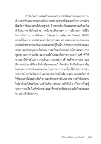 141(7) %u0e43%u0e19%u0e40%u0e23%u0e37%u0e48%u0e2d%u0e07%u0e01%u0e32%u0e23%u0e40%u0e2a%u0e23%u0e34%u0e21%u0e2a%u0e23%u0e49%u0e32%u0e07%u0e04%u0e48%u0e32%u0e19%u0e34%u0e22%u0e21%u0e1b%u0e23%u0e30%u0e0a%u0e32%u0e18%u0e34%u0e1b%u0e44%u0e15%u0e22%u0e1c%u0e48%u0e32%u0e19%u0e2a%u0e37%u0e48%u0e2d%u0e41%u0e25%u0e30%u0e01%u0e34%u0e08%u0e01%u0e23%u0e23%u0e21%u0e40%u0e0a%u0e34%u0e07%u0e1b%u0e23%u0e30%u0e0a%u0e32%u0e18%u0e34%u0e1b%u0e44%u0e15%u0e22 %u0e08%u0e32%u0e01%u0e1c%u0e25%u0e01%u0e32%u0e23%u0e28%u0e36%u0e01%u0e29%u0e32 %u0e1e%u0e1a%u0e27%u0e48%u0e32 %u0e40%u0e22%u0e32%u0e27%u0e0a%u0e19%u0e17%u0e35%u0e48%u0e21%u0e35%u0e04%u0e27%u0e32%u0e21%u0e2a%u0e19%u0e43%u0e08%u0e17%u0e32%u0e07%u0e01%u0e32%u0e23%u0e40%u0e21%u0e37%u0e2d%u0e07%u0e21%u0e35%u0e23%u0e30%u0e14%u0e31%u0e1a%u0e04%u0e48%u0e32%u0e19%u0e34%u0e22%u0e21%u0e1b%u0e23%u0e30%u0e0a%u0e32%u0e18%u0e34%u0e1b%u0e44%u0e15%u0e22%u0e2a%u0e39%u0e07%u0e01%u0e27%u0e48%u0e32 %u0e0b%u0e36%u0e48%u0e07%u0e2a%u0e2d%u0e14%u0e04%u0e25%u0e49%u0e2d%u0e07%u0e01%u0e31%u0e1a%u0e41%u0e19%u0e27%u0e17%u0e32%u0e07%u0e01%u0e32%u0e23%u0e40%u0e2a%u0e23%u0e34%u0e21%u0e2a%u0e23%u0e49%u0e32%u0e07%u0e04%u0e48%u0e32%u0e19%u0e34%u0e22%u0e21%u0e1b%u0e23%u0e30%u0e0a%u0e32%u0e18%u0e34%u0e1b%u0e44%u0e15%u0e22%u0e1c%u0e48%u0e32%u0e19%u0e01%u0e32%u0e23%u0e2a%u0e19%u0e31%u0e1a%u0e2a%u0e19%u0e38%u0e19%u0e01%u0e34%u0e08%u0e01%u0e23%u0e23%u0e21%u0e17%u0e32%u0e07%u0e01%u0e32%u0e23%u0e40%u0e21%u0e37%u0e2d%u0e07%u0e41%u0e25%u0e30%u0e01%u0e32%u0e23%u0e43%u0e0a%u0e49%u0e2a%u0e37%u0e48%u0e2d%u0e43%u0e19%u0e01%u0e32%u0e23%u0e2a%u0e37%u0e48%u0e2d%u0e2a%u0e32%u0e23%u0e1b%u0e23%u0e30%u0e0a%u0e32%u0e18%u0e34%u0e1b%u0e44%u0e15%u0e22 %u0e07%u0e32%u0e19%u0e27%u0e34%u0e08%u0e31%u0e22%u0e02%u0e2d%u0e07 Schaefer %u0e41%u0e25%u0e30 Overton (2022) %u0e41%u0e2a%u0e14%u0e07%u0e43%u0e2b%u0e49%u0e40%u0e2b%u0e47%u0e19%u0e27%u0e48%u0e32 %u0e01%u0e32%u0e23%u0e21%u0e35%u0e2a%u0e48%u0e27%u0e19%u0e23%u0e48%u0e27%u0e21%u0e43%u0e19%u0e01%u0e34%u0e08%u0e01%u0e23%u0e23%u0e21%u0e17%u0e32%u0e07%u0e01%u0e32%u0e23%u0e40%u0e21%u0e37%u0e2d%u0e07%u0e41%u0e25%u0e30%u0e2a%u0e31%u0e07%u0e04%u0e21%u0e15%u0e31%u0e49%u0e07%u0e41%u0e15%u0e48%u0e2d%u0e32%u0e22%u0e38%u0e22%u0e31%u0e07%u0e19%u0e49%u0e2d%u0e22%u0e2a%u0e32%u0e21%u0e32%u0e23%u0e16%u0e40%u0e1e%u0e34%u0e48%u0e21%u0e1e%u0e39%u0e19%u0e01%u0e32%u0e23%u0e15%u0e23%u0e30%u0e2b%u0e19%u0e31%u0e01%u0e23%u0e39%u0e49%u0e43%u0e19%u0e40%u0e23%u0e37%u0e48%u0e2d%u0e07%u0e04%u0e48%u0e32%u0e19%u0e34%u0e22%u0e21%u0e1b%u0e23%u0e30%u0e0a%u0e32%u0e18%u0e34%u0e1b%u0e44%u0e15%u0e22%u0e41%u0e25%u0e30%u0e01%u0e32%u0e23%u0e40%u0e04%u0e32%u0e23%u0e1e%u0e2a%u0e34%u0e17%u0e18%u0e34%u0e21%u0e19%u0e38%u0e29%u0e22%u0e0a%u0e19%u0e43%u0e19%u0e2a%u0e31%u0e07%u0e04%u0e21 %u0e01%u0e32%u0e23%u0e21%u0e35%u0e1e%u0e37%u0e49%u0e19%u0e17%u0e35%u0e48%u0e2b%u0e23%u0e37%u0e2d%u0e0a%u0e48%u0e2d%u0e07%u0e17%u0e32%u0e07%u0e43%u0e2b%u0e49%u0e40%u0e22%u0e32%u0e27%u0e0a%u0e19%u0e2a%u0e32%u0e21%u0e32%u0e23%u0e16%u0e1e%u0e39%u0e14%u0e04%u0e38%u0e22 %u0e41%u0e2a%u0e14%u0e07%u0e04%u0e27%u0e32%u0e21%u0e40%u0e2b%u0e47%u0e19 %u0e41%u0e25%u0e30%u0e23%u0e48%u0e27%u0e21%u0e21%u0e37%u0e2d%u0e43%u0e19%u0e1b%u0e23%u0e30%u0e40%u0e14%u0e47%u0e19%u0e2a%u0e32%u0e18%u0e32%u0e23%u0e13%u0e30%u0e2d%u0e22%u0e48%u0e32%u0e07%u0e40%u0e2a%u0e23%u0e35 %u0e17%ufffd%u0e33%u0e43%u0e2b%u0e49%u0e1e%u0e27%u0e01%u0e40%u0e02%u0e32%u0e21%u0e35%u0e17%u0e31%u0e01%u0e29%u0e30%u0e43%u0e19%u0e01%u0e32%u0e23%u0e1b%u0e23%u0e30%u0e40%u0e21%u0e34%u0e19%u0e2a%u0e16%u0e32%u0e19%u0e01%u0e32%u0e23%u0e13%u0e4c%u0e17%u0e32%u0e07%u0e2a%u0e31%u0e07%u0e04%u0e21%u0e17%u0e35%u0e48%u0e2b%u0e25%u0e32%u0e01%u0e2b%u0e25%u0e32%u0e22 %u0e41%u0e25%u0e30%u0e21%u0e35%u0e04%u0e27%u0e32%u0e21%u0e40%u0e02%u0e49%u0e32%u0e43%u0e08%u0e15%u0e48%u0e2d%u0e21%u0e34%u0e15%u0e34%u0e02%u0e2d%u0e07%u0e2a%u0e34%u0e17%u0e18%u0e34%u0e40%u0e2a%u0e23%u0e35%u0e20%u0e32%u0e1e%u0e41%u0e25%u0e30%u0e2b%u0e19%u0e49%u0e32%u0e17%u0e35%u0e48%u0e1e%u0e25%u0e40%u0e21%u0e37%u0e2d%u0e07 %u0e0b%u0e36%u0e48%u0e07%u0e40%u0e1b%u0e47%u0e19%u0e17%u0e31%u0e01%u0e29%u0e30%u0e2a%ufffd%u0e33%u0e04%u0e31%u0e0d%u0e43%u0e19%u0e2a%u0e31%u0e07%u0e04%u0e21%u0e1b%u0e23%u0e30%u0e0a%u0e32%u0e18%u0e34%u0e1b%u0e44%u0e15%u0e22%u0e17%u0e35%u0e48%u0e21%u0e35%u0e04%u0e27%u0e32%u0e21%u0e40%u0e1b%u0e47%u0e19%u0e1e%u0e25%u0e27%u0e31%u0e15 %u0e07%u0e32%u0e19%u0e27%u0e34%u0e08%u0e31%u0e22%u0e19%u0e35%u0e49%u0e22%u0e31%u0e07%u0e0a%u0e35%u0e49%u0e43%u0e2b%u0e49%u0e40%u0e2b%u0e47%u0e19%u0e27%u0e48%u0e32%u0e04%u0e48%u0e32%u0e19%u0e34%u0e22%u0e21%u0e1b%u0e23%u0e30%u0e0a%u0e32%u0e18%u0e34%u0e1b%u0e44%u0e15%u0e22%u0e17%u0e35%u0e48%u0e41%u0e02%u0e47%u0e07%u0e41%u0e01%u0e23%u0e48%u0e07%u0e43%u0e19%u0e40%u0e22%u0e32%u0e27%u0e0a%u0e19%u0e22%u0e31%u0e07%u0e40%u0e01%u0e35%u0e48%u0e22%u0e27%u0e02%u0e49%u0e2d%u0e07%u0e42%u0e14%u0e22%u0e15%u0e23%u0e07%u0e01%u0e31%u0e1a%u0e01%u0e32%u0e23%u0e40%u0e1b%u0e34%u0e14%u0e42%u0e2d%u0e01%u0e32%u0e2a%u0e43%u0e2b%u0e49%u0e1e%u0e27%u0e01%u0e40%u0e02%u0e32%u0e21%u0e35%u0e2a%u0e48%u0e27%u0e19%u0e23%u0e48%u0e27%u0e21%u0e43%u0e19%u0e01%u0e34%u0e08%u0e01%u0e23%u0e23%u0e21%u0e40%u0e0a%u0e34%u0e07%u0e1b%u0e23%u0e30%u0e0a%u0e32%u0e18%u0e34%u0e1b%u0e44%u0e15%u0e22 %u0e40%u0e0a%u0e48%u0e19 %u0e01%u0e32%u0e23%u0e08%u0e31%u0e14%u0e01%u0e34%u0e08%u0e01%u0e23%u0e23%u0e21%u0e43%u0e19%u0e42%u0e23%u0e07%u0e40%u0e23%u0e35%u0e22%u0e19%u0e17%u0e35%u0e48%u0e2a%u0e48%u0e07%u0e40%u0e2a%u0e23%u0e34%u0e21%u0e04%u0e27%u0e32%u0e21%u0e40%u0e02%u0e49%u0e32%u0e43%u0e08%u0e43%u0e19%u0e01%u0e23%u0e30%u0e1a%u0e27%u0e19%u0e01%u0e32%u0e23%u0e15%u0e31%u0e14%u0e2a%u0e34%u0e19%u0e43%u0e08 %u0e2b%u0e23%u0e37%u0e2d%u0e01%u0e32%u0e23%u0e40%u0e23%u0e35%u0e22%u0e19%u0e23%u0e39%u0e49%u0e08%u0e32%u0e01%u0e01%u0e32%u0e23%u0e16%u0e01%u0e40%u0e16%u0e35%u0e22%u0e07%u0e43%u0e19%u0e2b%u0e31%u0e27%u0e02%u0e49%u0e2d%u0e2a%u0e32%u0e18%u0e32%u0e23%u0e13%u0e30 %u0e0b%u0e36%u0e48%u0e07%u0e08%u0e30%u0e0a%u0e48%u0e27%u0e22%u0e1e%u0e31%u0e12%u0e19%u0e32%u0e04%u0e27%u0e32%u0e21%u0e23%u0e31%u0e1a%u0e1c%u0e34%u0e14%u0e0a%u0e2d%u0e1a%u0e41%u0e25%u0e30%u0e04%u0e27%u0e32%u0e21%u0e23%u0e48%u0e