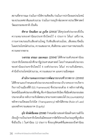 36 %u0e01%u0e32%u0e23%u0e28%u0e36%u0e01%u0e29%u0e32%u0e04%u0e48%u0e32%u0e19%u0e34%u0e22%u0e21%u0e1b%u0e23%u0e30%u0e0a%u0e32%u0e18%u0e34%u0e1b%u0e44%u0e15%u0e22%u0e43%u0e19%u0e40%u0e22%u0e32%u0e27%u0e0a%u0e19%u0e44%u0e17%u0e22%u0e2a%u0e16%u0e32%u0e19%u0e17%u0e35%u0e48%u0e2a%u0e32%u0e18%u0e32%u0e23%u0e13%u0e30%u0e23%u0e48%u0e27%u0e21%u0e43%u0e19%u0e01%u0e32%u0e23%u0e43%u0e2b%u0e49%u0e04%u0e27%u0e32%u0e21%u0e04%u0e34%u0e14%u0e40%u0e2b%u0e47%u0e19 %u0e23%u0e48%u0e27%u0e21%u0e43%u0e19%u0e01%u0e32%u0e23%u0e1b%u0e01%u0e1b%u0e49%u0e2d%u0e07%u0e1c%u0e25%u0e1b%u0e23%u0e30%u0e42%u0e22%u0e0a%u0e19%u0e4c%u0e02%u0e2d%u0e07%u0e1b%u0e23%u0e30%u0e40%u0e17%u0e28%u0e0a%u0e32%u0e15%u0e34%u0e41%u0e25%u0e30%u0e2a%u0e48%u0e27%u0e19%u0e23%u0e27%u0e21 %u0e23%u0e48%u0e27%u0e21%u0e43%u0e19%u0e01%u0e32%u0e23%u0e2d%u0e19%u0e38%u0e23%u0e31%u0e01%u0e29%u0e4c%u0e21%u0e23%u0e14%u0e01%u0e17%u0e32%u0e07%u0e1b%u0e23%u0e30%u0e27%u0e31%u0e15%u0e34%u0e28%u0e32%u0e2a%u0e15%u0e23%u0e4c%u0e27%u0e31%u0e12%u0e19%u0e18%u0e23%u0e23%u0e21%u0e02%u0e2d%u0e07%u0e0a%u0e32%u0e15%u0e34%u0e40%u0e1b%u0e47%u0e19%u0e15%u0e49%u0e19%u0e1e%u0e34%u0e0a%u0e32%u0e22 %u0e23%u0e31%u0e15%u0e19%u0e14%u0e34%u0e25%u0e01 %u0e13 %u0e20%u0e39%u0e40%u0e01%u0e47%u0e15 (2553) %u0e44%u0e14%u0e49%u0e2a%u0e23%u0e38%u0e1b%u0e2d%u0e07%u0e04%u0e4c%u0e1b%u0e23%u0e30%u0e01%u0e2d%u0e1a%u0e17%u0e35%u0e48%u0e40%u0e1b%u0e47%u0e19%u0e04%u0e27%u0e32%u0e21%u0e2b%u0e21%u0e32%u0e22%u0e02%u0e2d%u0e07%u0e04 %u0e48%u0e32%u0e19%u0e34%u0e22%u0e21%u0e1b%u0e23%u0e30%u0e0a%u0e32%u0e18%u0e34%u0e1b%u0e44%u0e15%u0e22%u0e44%u0e27%u0e496 %u0e1b%u0e23%u0e30%u0e01%u0e32%u0e23 %u0e44%u0e14%u0e49%u0e41%u0e01%u0e48 %u0e40%u0e2a%u0e23%u0e35%u0e20%u0e32%u0e1e,%u0e01%u0e32%u0e23%u0e40%u0e04%u0e32%u0e23%u0e1e/%u0e22%u0e2d%u0e21%u0e23%u0e31%u0e1a%u0e40%u0e2a%u0e35%u0e22%u0e07%u0e2a%u0e48%u0e27%u0e19%u0e43%u0e2b%u0e0d%u0e48 %u0e23%u0e31%u0e1a%u0e1f%u0e31%u0e07%u0e40%u0e2a%u0e35%u0e22%u0e07%u0e2a%u0e48%u0e27%u0e19%u0e19%u0e49%u0e2d%u0e22, %u0e40%u0e2a%u0e35%u0e22%u0e2a%u0e25%u0e30/%u0e22%u0e36%u0e14%u0e21%u0e31%u0e48%u0e19%u0e43%u0e19%u0e1c%u0e25%u0e1b%u0e23%u0e30%u0e42%u0e22%u0e0a%u0e19%u0e4c%u0e2a%u0e48%u0e27%u0e19%u0e23%u0e48%u0e27%u0e21,%u0e04%u0e27%u0e32%u0e21%u0e40%u0e2a%u0e21%u0e2d%u0e20%u0e32%u0e04,%u0e2a%u0e31%u0e19%u0e15%u0e34%u0e18%u0e23%u0e23%u0e21 %u0e41%u0e25%u0e30%u0e01%u0e32%u0e23%u0e40%u0e04%u0e32%u0e23%u0e1e/%u0e22%u0e2d%u0e21%u0e23%u0e31%u0e1a%u0e04%u0e27%u0e32%u0e21%u0e2b%u0e25%u0e32%u0e01%u0e2b%u0e25%u0e32%u0e22%u0e27%u0e07%u0e18%u0e23%u0e23%u0e21 %u0e2a%u0e23%u0e13%u0e30 %u0e41%u0e25%u0e30%u0e04%u0e13%u0e30 (2554) %u0e44%u0e14%u0e49%u0e28%u0e36%u0e01%u0e29%u0e32%u0e23%u0e30%u0e14%u0e31%u0e1a%u0e02%u0e2d%u0e07%u0e04%u0e48%u0e32%u0e19%u0e34%u0e22%u0e21%u0e1b%u0e23%u0e30%u0e0a%u0e32%u0e18%u0e34%u0e1b%u0e44%u0e15%u0e22%u0e02%u0e2d%u0e07%u0e19%u0e31%u0e01%u0e28%u0e36%u0e01%u0e29%u0e32%u0e23%u0e31%u0e10%u0e1b%u0e23%u0e30%u0e28%u0e32%u0e2a%u0e19%u0e28%u0e32%u0e2a%u0e15%u0e23%u0e4c%u0e42%u0e14%u0e22%u0e01%ufffd%u0e33%u0e2b%u0e19%u0e14%u0e2d%u0e07%u0e04%u0e4c%u0e1b%u0e23%u0e30%u0e01%u0e2d%u0e1a%u0e02%u0e2d%u0e07%u0e04 %u0e48%u0e32%u0e19%u0e34%u0e22%u0e21%u0e1b%u0e23%u0e30%u0e0a%u0e32%u0e18%u0e34%u0e1b%u0e44%u0e15%u0e22%u0e44%u0e27%u0e494 %u0e2d%u0e07%u0e04%u0e4c%u0e1b%u0e23%u0e30%u0e01%u0e2d%u0e1a %u0e44%u0e14%u0e49%u0e41%u0e01%u0e48 %u0e04%u0e27%u0e32%u0e21%u0e23%u0e31%u0e1a%u0e1c%u0e34%u0e14%u0e0a%u0e2d%u0e1a,%u0e04%ufffd%u0e33%u0e19%u0e36%u0e07%u0e16%u0e36%u0e07%u0e1b%u0e23%u0e30%u0e42%u0e22%u0e0a%u0e19%u0e4c%u0e2a%u0e48%u0e27%u0e19%u0e23%u0e27%u0e21, %u0e04%u0e27%u0e32%u0e21%u0e40%u0e2a%u0e21%u0e2d%u0e20%u0e32%u0e04 %u0e41%u0e25%u0e30%u0e04%u0e27%u0e32%u0e21%u0e21%u0e35%u0e40%u0e2b%u0e15%u0e38%u0e1c%u0e25%u0e2a%ufffd%u0e33%u0e19%u0e31%u0e01%u0e07%u0e32%u0e19%u0e04%u0e13%u0e30%u0e01%u0e23%u0e23%u0e21%u0e01%u0e32%u0e23%u0e1e%u0e31%u0e12%u0e19%u0e32%u0e23%u0e30%u0e1a%u0e1a%u0e02%u0e49%u0e32%u0e23%u0e32%u0e0a%u0e01%u0e32%u0e23 (2555)%u0e44%u0e14%u0e49%u0e28%u0e36%u0e01%u0e29%u0e32%u0e41%u0e25%u0e30%u0e01%ufffd%u0e33%u0e2b%u0e19%u0e14%u0e2d%u0e07%u0e04%u0e4c%u0e1b%u0e23%u0e30%u0e01%u0e2d%u0e1a%u0e02%u0e2d%u0e07%u0e2b%u0e25%u0e31%u0e01%u0e18%u0e23%u0e23%u0e21%u0e32%u0e20%u0e34%u0e1a%u0e32%u0e25%u0e02%u0e2d%u0e07%u0e01%u0e32%u0e23%u0e1a%u0e23%u0e34%u0e2b%u0e32%u0e23%u0e01%u0e34%u0e08%u0e01%u0e32%u0e23%u0e1a%u0e49%u0e32%u0e19%u0e40%u0e21%u0e37%u0e2d%u0e07%u0e17%u0e35%u0e48%u0e14%u0e35(GG Framework) %u0e0b%u0e36%u0e48%u0e07%u0e1b%u0e23%u0e30%u0e01%u0e2d%u0e1a%u0e14%u0e49%u0e27%u0e22 4 %u0e2b%u0e25%u0e31%u0e01%u0e01%u0e32%u0e23%u0e2a%ufffd%u0e33%u0e04%u0e31%u0e0d%u0e42%u0e14%u0e22%u0e2b%u0e19%u0e36%u0e48%u0e07%u0e43%u0e19%u0e2d%u0e07%u0e04%u0e4c%u0e1b%u0e23%u0e30%u0e01%u0e2d%u0e1a%u0e17%u0e35%u0e48%u0e2a%ufffd%u0e33%u0e04%u0e31%u0e0d %u0e04%u0e37%u0e2d%u0e04%u0e48%u0e32%u0e19%u0e34%u0e22%u0e21%u0e1b%u0e23%u0e30%u0e0a%u0e32%u0e18%u0e34%u0e1b%u0e44%u0e15%u0e22%u0e0b%u0e36%u0e48%u0e07%u0e21%u0e35%u0e2d%u0e07%u0e04%u0e4c%u0e1b%u0e23%u0e30%u0e01%u0e2d%u0e1a%u0e22%u0e48%u0e2d%u0e22%u0e1b%u0e23%u0e30%u0e01%u0e2d%u0e1a%u0e14%u0e49%u0e27%u0e22 %u0e2b%u0e25%u0e31%u0e01%u0e20%u0e32%u0e23%u0e30%u0e23%u0e31%u0e1a%u0e1c%u0e34%u0e14%u0e0a%u0e2d%u0e1a/%u0e2a%u0e32%u0e21%u0e32%u0e23%u0e16%u0e15%u0e23%u0e27%u0e08%u0e2a%u0e2d%u0e1a%u0e44%u0e14%u0e49(Accountability)%u0e2b%u0e25%u0e31%u0e01%u0e04%u0e27%u0e32%u0e21%u0e40%u0e1b%u0e34%u0e14%u0e40%u0e1c%u0e22/%u0e42%u0e1b%u0e23%u0e48%u0e07%u0e43%u0e2a (Transparency) %u0e2b%u0e25%u0e31%u0e01%u0e19%u0e34%u0e15%u0e34%u0e18%u0e23%u0e23%u0e21 (Ruleof Law)%u0e41%u0e25%u0e30%u0e2b%u0e25%u0e31%u0e01%u0e04%u0e27%u0e32%u0e21%u0e40%u0e2a%u0e21%u0e2d%u0e20%u0e32%u0e04 (Equity)%u0e2d%u0e38%u0e44%u0e23 %u0e08%u0e31%u0e01%u0e29%u0e4c%u0e15%u0e23%u0e35%u0e21%u0e07%u0e04%u0e25 (2558)%u0e01%ufffd%u0e33%u0e2b%u0e19%u0e14%u0e19%u0e34%u0e22%u0e32%u0e21%u0e02%u0e2d%u0e07%u0e04%u0e48%u0e32%u0e19%u0e34%u0e22%u0e21%u0e14%u0e49%u0e32%u0e19%u0e04%u0e27%u0e32%u0e21%u0e40%u0e02%u0e49%u0e32%u0e43%u0e08%u0e40%u0e23%u0e35%u0e22%u0e19%u0e23%u0e39%u0e49%u0e01%u0e32%u0e23%u0e40%u0e1b%u0e47%u0e19%u0e1b%u0