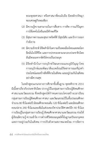 44 %u0e01%u0e32%u0e23%u0e28%u0e36%u0e01%u0e29%u0e32%u0e04%u0e48%u0e32%u0e19%u0e34%u0e22%u0e21%u0e1b%u0e23%u0e30%u0e0a%u0e32%u0e18%u0e34%u0e1b%u0e44%u0e15%u0e22%u0e43%u0e19%u0e40%u0e22%u0e32%u0e27%u0e0a%u0e19%u0e44%u0e17%u0e22%u0e1e%u0e23%u0e30%u0e1e%u0e38%u0e17%u0e18%u0e28%u0e32%u0e2a%u0e19%u0e32 %u0e2b%u0e23%u0e37%u0e2d%u0e28%u0e32%u0e2a%u0e19%u0e32%u0e17%u0e35%u0e48%u0e15%u0e19%u0e19%u0e31%u0e1a%u0e16%u0e37%u0e2d %u0e22%u0e36%u0e14%u0e2b%u0e25%u0e31%u0e01%u0e1b%u0e23%u0e31%u0e0a%u0e0d%u0e32%u0e02%u0e2d%u0e07%u0e40%u0e28%u0e23%u0e29%u0e10%u0e01%u0e34%u0e08%u0e1e%u0e2d%u0e40%u0e1e%u0e35%u0e22%u0e07(2) %u0e21%u0e35%u0e04%u0e27%u0e32%u0e21%u0e23%u0e39%u0e49%u0e04%u0e27%u0e32%u0e21%u0e2a%u0e32%u0e21%u0e32%u0e23%u0e16%u0e43%u0e19%u0e01%u0e32%u0e23%u0e2a%u0e37%u0e48%u0e2d%u0e2a%u0e32%u0e23 %u0e01%u0e32%u0e23%u0e04%u0e34%u0e14 %u0e01%u0e32%u0e23%u0e41%u0e01%u0e49%u0e1b%u0e31%u0e0d%u0e2b%u0e32 %u0e01%u0e32%u0e23%u0e43%u0e0a%u0e49%u0e40%u0e17%u0e04%u0e42%u0e19%u0e42%u0e25%u0e22%u0e35%u0e41%u0e25%u0e30%u0e21%u0e35%u0e17%u0e31%u0e01%u0e29%u0e30%u0e0a%u0e35%u0e27%u0e34%u0e15 (3) %u0e21%u0e35%u0e2a%u0e38%u0e02%u0e20%u0e32%u0e1e%u0e01%u0e32%u0e22%u0e41%u0e25%u0e30%u0e2a%u0e38%u0e02%u0e20%u0e32%u0e1e%u0e08%u0e34%u0e15%u0e17%u0e35%u0e48%u0e14%u0e35 %u0e21%u0e35%u0e2a%u0e38%u0e02%u0e19%u0e34%u0e2a%u0e31%u0e22 %u0e41%u0e25%u0e30%u0e23%u0e31%u0e01%u0e01%u0e32%u0e23%u0e2d%u0e2d%u0e01%u0e01%ufffd%u0e33%u0e25%u0e31%u0e07%u0e01%u0e32%u0e22(4) %u0e21%u0e35%u0e04%u0e27%u0e32%u0e21%u0e23%u0e31%u0e01%u0e0a%u0e32%u0e15%u0e34 %u0e21%u0e35%u0e08%u0e34%u0e15%u0e2a%ufffd%u0e33%u0e19%u0e36%u0e01%u0e43%u0e19%u0e04%u0e27%u0e32%u0e21%u0e40%u0e1b%u0e47%u0e19%u0e1e%u0e25%u0e40%u0e21%u0e37%u0e2d%u0e07%u0e44%u0e17%u0e22%u0e41%u0e25%u0e30%u0e1e%u0e25%u0e42%u0e25%u0e01 %u0e22%u0e36%u0e14%u0e21%u0e31%u0e48%u0e19%u0e43%u0e19%u0e27%u0e34%u0e16%u0e35%u0e0a%u0e35%u0e27%u0e34%u0e15 %u0e41%u0e25%u0e30%u0e01%u0e32%u0e23%u0e1b%u0e01%u0e04%u0e23%u0e2d%u0e07%u0e15%u0e32%u0e21%u0e23%u0e30%u0e1a%u0e2d%u0e1a%u0e1b%u0e23%u0e30%u0e0a%u0e32%u0e18%u0e34%u0e1b%u0e44%u0e15%u0e22%u0e2d%u0e31%u0e19%u0e21%u0e35%u0e1e%u0e23%u0e30%u0e21%u0e2b%u0e32%u0e01%u0e29%u0e31%u0e15%u0e23%u0e34%u0e22%u0e4c%u0e17%u0e23%u0e07%u0e40%u0e1b%u0e47%u0e19%u0e1b%u0e23%u0e30%u0e21%u0e38%u0e02(5) %u0e21%u0e35%u0e08%u0e34%u0e15%u0e2a%ufffd%u0e33%u0e19%u0e36%u0e01%u0e43%u0e19%u0e01%u0e32%u0e23%u0e2d%u0e19%u0e38%u0e23%u0e31%u0e01%u0e29%u0e4c%u0e27%u0e31%u0e12%u0e19%u0e18%u0e23%u0e23%u0e21%u0e41%u0e25%u0e30%u0e20%u0e39%u0e21%u0e34%u0e1b%u0e31%u0e0d%u0e0d%u0e32%u0e44%u0e17%u0e22 %u0e01%u0e32%u0e23%u0e2d%u0e19%u0e38%u0e23%u0e31%u0e01%u0e29%u0e4c%u0e41%u0e25%u0e30%u0e1e%u0e31%u0e12%u0e19%u0e32%u0e2a%u0e34%u0e48%u0e07%u0e41%u0e27%u0e14%u0e25%u0e49%u0e2d%u0e21%u0e21%u0e35%u0e08%u0e34%u0e15%u0e2a%u0e32%u0e18%u0e32%u0e23%u0e13%u0e30%u0e17%u0e35%u0e48%u0e21%u0e38%u0e48%u0e07%u0e17%ufffd%u0e33%u0e1b%u0e23%u0e30%u0e42%u0e22%u0e0a%u0e19%u0e4c%u0e41%u0e25%u0e30%u0e2a%u0e23%u0e49%u0e32%u0e07%u0e2a%u0e34%u0e48%u0e07%u0e17%u0e35%u0e48%u0e14%u0e35%u0e07%u0e32%u0e21%u0e43%u0e19%u0e2a%u0e31%u0e07%u0e04%u0e21 %u0e41%u0e25%u0e30%u0e2d%u0e22%u0e39%u0e48%u0e23%u0e48%u0e27%u0e21%u0e01%u0e31%u0e19%u0e43%u0e19%u0e2a%u0e31%u0e07%u0e04%u0e21%u0e2d%u0e22%u0e48%u0e32%u0e07%u0e21%u0e35%u0e04%u0e27%u0e32%u0e21%u0e2a%u0e38%u0e02%u0e43%u0e19%u0e2b%u0e25%u0e31%u0e01%u0e2a%u0e39%u0e15%u0e23%u0e41%u0e01%u0e19%u0e01%u0e25%u0e32%u0e07%u0e01%u0e32%u0e23%u0e28%u0e36%u0e01%u0e29%u0e32%u0e02%u0e31%u0e49%u0e19%u0e1e%u0e37%u0e49%u0e19%u0e10%u0e32%u0e19 %u0e1e%u0e38%u0e17%u0e18%u0e28%u0e31%u0e01%u0e23%u0e32%u0e0a 2551 %u0e21%u0e35%u0e40%u0e19%u0e37%u0e49%u0e2d%u0e2b%u0e32%u0e40%u0e01%u0e35%u0e48%u0e22%u0e27%u0e01%u0e31%u0e1a%u0e1b%u0e23%u0e30%u0e0a%u0e32%u0e18%u0e34%u0e1b%u0e44%u0e15%u0e22 %u0e1b%u0e23%u0e32%u0e01%u0e0f%u0e44%u0e27%u0e49%u0e43%u0e19%u0e01%u0e25%u0e38%u0e48%u0e21%u0e2a%u0e32%u0e23%u0e30%u0e01%u0e32%u0e23%u0e40%u0e23%u0e35%u0e22%u0e19%u0e23%u0e39%u0e49%u0e2a%u0e31%u0e07%u0e04%u0e21%u0e28%u0e36%u0e01%u0e29%u0e32 %u0e28%u0e32%u0e2a%u0e19%u0e32%u0e41%u0e25%u0e30%u0e27%u0e31%u0e12%u0e19%u0e18%u0e23%u0e23%u0e21 %u0e0b%u0e36%u0e48%u0e07%u0e2b%u0e25%u0e31%u0e01%u0e2a%u0e39%u0e15%u0e23%u0e44%u0e14%u0e49%u0e01%ufffd%u0e33%u0e2b%u0e19%u0e14%u0e01%u0e23%u0e2d%u0e1a%u0e42%u0e04%u0e23%u0e07%u0e2a%u0e23%u0e49%u0e32%u0e07%u0e40%u0e27%u0e25%u0e32%u0e40%u0e23%u0e35%u0e22%u0e19%u0e01%u0e25%u0e38%u0e48%u0e21%u0e2a%u0e32%u0e23%u0e30%u0e01%u0e32%u0e23%u0e40%u0e23%u0e35%u0e22%u0e19%u0e23%u0e39%u0e49%u0e2a%u0e31%u0e07%u0e04%u0e21%u0e28%u0e36%u0e01%u0e29%u0e32 %u0e28%u0e32%u0e2a%u0e19%u0e32 %u0e41%u0e25%u0e30%u0e27%u0e31%u0e12%u0e19%u0e18%u0e23%u0e23%u0e21%u0e44%u0e27%u0e49%u0e43%u0e19%u0e0a%u0e31%u0e49%u0e19%u0e1b%u0e23%u0e30%u0e16%u0e21%u0e28%u0e36%u0e01%u0e29%u0e32 %u0e08%ufffd%u0e33%u0e19%u0e27%u0e19 80 %u0e0a%u0e31%u0e48%u0e27%u0e42%u0e21%u0e07%u0e15%u0e48%u0e2d%u0e1b%u0e35 %u0e21%u0e31%u0e18%u0e22%u0e21%u0e28%u0e36%u0e01%u0e29%u0e32%u0e15%u0e2d%u0e19%u0e15%u0e49%u0e19 120 %u0e0a%u0e31%u0e48%u0e07%u0e42%u0e21%u0e07%u0e15%u0e48%u0e2d%u0e1b%u0e35 %u0e41%u0e25%u0e30%u0e21%u0e31%u0e18%u0e22%u0e21%u0e28%u0e36%u0e01%u0e29%u0e32%u0e15%u0e2d%u0e19%u0e1b%u0e25%u0e32%u0e22 240 %u0e0a%u0e31%u0e48%u0e27%u0e42%u0e21%u0e07%u0e41%u0e25%u0e30%u0e40%u0e1e%u0e34%u0e48%u0e21%u0e43%u0e19%u0e2a%u0e48%u0e27%u0e19%u0e02%u0e2d%u0e07%u0e27%u0e34%u0e0a%u0e32%u0e1b%u0e23%u0e30%u0e27%u0e31%u0e15%u0e34%u0e28%u0e32%u0e2a%u0e15%u0e23%u0e4c%u0e2d%u0e35%u0e01 40 %u0e0a%u0e31%u0e48%u0e27%u0e42%u0e21%u0e07 %u0e01%u0e32%u0e23%u0e40%u0e23%u0e35%u0e22%u0e19%u0e23%u0e39%u0e49%u0e43%u0e19%u0e01%u0e25%u0e38%u0e48%u0e21%u0e2a%u0e32%u0e23%u0e30%u0e01%u0e32%u0e23%u0e40%u0e23%u0e35%u0e22%u0e19%u0e23%u0e39%u0e49 %u0e2a%u0e31%u0e07%u0e04%u0e21%u0e28%u0e36%u0e01%u0e29%u0e32%u0e28%u0e32%u0e2a%u0e19%u0e32%u0e41%u0e25%u0e30%u0e27%u0e31%u0e12%u0e19%u0e18%u0e23%u0e23%u0e21 %u0e0a%u0e48%u0e27%u0e22%u0e43%u0e2b%u0e49%u0e1c%u0e39%u0e49%u0e40%u0e23%u0e35%u0e22%u0e19%u0e21%u0e35%u0e04%u0e27%u0e32%u0e21%u0e23%u0e39%u0e49 %u0e04%u0e27%u0e32%u0e21%u0e40%u0e02%u0e49%u0e32%u0e43%u0e08 %u