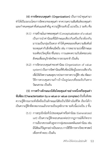 53(4) %u0e01%u0e32%u0e23%u0e08%u0e31%u0e14%u0e23%u0e30%u0e1a%u0e1a%u0e04%u0e38%u0e13%u0e04%u0e48%u0e32 (Organization) %u0e40%u0e1b%u0e47%u0e19%u0e01%u0e32%u0e23%u0e19%ufffd%u0e33%u0e04%u0e38%u0e13%u0e04%u0e48%u0e32%u0e21%u0e32%u0e17%ufffd%u0e33%u0e43%u0e2b%u0e49%u0e40%u0e1b%u0e47%u0e19%u0e23%u0e30%u0e1a%u0e1a%u0e42%u0e14%u0e22%u0e01%u0e32%u0e23%u0e08%u0e31%u0e14%u0e1e%u0e27%u0e01%u0e02%u0e2d%u0e07%u0e04%u0e38%u0e13%u0e04%u0e48%u0e32 %u0e2b%u0e32%u0e04%u0e27%u0e32%u0e21%u0e04%u0e27%u0e32%u0e21%u0e2a%u0e31%u0e21%u0e1e%u0e31%u0e19%u0e18%u0e4c%u0e02%u0e2d%u0e07%u0e04%u0e38%u0e13%u0e04%u0e48%u0e32 %u0e41%u0e25%u0e30%u0e01%u0e4d%u0e32%u0e2b%u0e19%u0e14%u0e04%u0e38%u0e13%u0e04%u0e48%u0e32%u0e17%u0e35%u0e48%u0e40%u0e14%u0e48%u0e19%u0e41%u0e25%u0e30%u0e2a%ufffd%u0e33%u0e04%u0e31%u0e0d %u0e04%u0e27%u0e32%u0e21%u0e23%u0e39%u0e49%u0e2a%u0e36%u0e01%u0e23%u0e30%u0e14%u0e31%u0e1a%u0e19%u0e35%u0e49 %u0e41%u0e1a%u0e48%u0e07%u0e40%u0e1b%u0e47%u0e19 2 %u0e23%u0e30%u0e14%u0e31%u0e1a %u0e04%u0e37%u0e2d(4.1) %u0e01%u0e32%u0e23%u0e2a%u0e23%u0e49%u0e32%u0e07%u0e21%u0e42%u0e19%u0e20%u0e32%u0e1e%u0e02%u0e2d%u0e07%u0e04%u0e38%u0e13%u0e04%u0e48%u0e32 (Conceptualization of a value) %u0e40%u0e1b%u0e47%u0e19%u0e01%u0e32%u0e23%u0e19%ufffd%u0e33%u0e04%u0e48%u0e32%u0e19%u0e34%u0e22%u0e21%u0e17%u0e35%u0e48%u0e21%u0e35%u0e25%u0e31%u0e01%u0e29%u0e13%u0e30%u0e40%u0e14%u0e35%u0e22%u0e27%u0e01%u0e31%u0e19%u0e2b%u0e23%u0e37%u0e2d%u0e40%u0e01%u0e35%u0e48%u0e22%u0e27%u0e02%u0e49%u0e2d%u0e07%u0e01%u0e31%u0e19%u0e21%u0e32%u0e23%u0e27%u0e21%u0e40%u0e1b%u0e47%u0e19%u0e01%u0e25%u0e38%u0e48%u0e21%u0e40%u0e1b%u0e47%u0e19%u0e1e%u0e27%u0e01 %u0e17%ufffd%u0e33%u0e43%u0e2b%u0e49%u0e1a%u0e38%u0e04%u0e04%u0e25%u0e21%u0e2d%u0e07%u0e40%u0e2b%u0e47%u0e19%u0e04%u0e27%u0e32%u0e21%u0e2a%u0e31%u0e21%u0e1e%u0e31%u0e19%u0e18%u0e4c %u0e02%u0e2d%u0e07%u0e04%u0e38%u0e13%u0e04%u0e48%u0e32%u0e01%u0e31%u0e1a%u0e2a%u0e34%u0e48%u0e07%u0e17%u0e35%u0e48%u0e15%u0e19%u0e22%u0e36%u0e14%u0e16%u0e37%u0e2d %u0e40%u0e0a%u0e48%u0e19 %u0e01%u0e32%u0e23%u0e1e%u0e22%u0e32%u0e22%u0e32%u0e21%u0e1a%u0e48%u0e07%u0e0a%u0e35%u0e49%u0e25%u0e31%u0e01%u0e29%u0e13%u0e30%u0e02%u0e2d%u0e07%u0e28%u0e34%u0e25%u0e1b%u0e27%u0e31%u0e15%u0e16%u0e38%u0e17%u0e35%u0e48%u0e40%u0e02%u0e32%u0e0a%u0e37%u0e48%u0e19%u0e0a%u0e2d%u0e1a %u0e01%u0e32%u0e23%u0e41%u0e2a%u0e14%u0e07%u0e04%u0e27%u0e32%u0e21%u0e23%u0e31%u0e1a%u0e1c%u0e34%u0e14%u0e0a%u0e2d%u0e1a%u0e15%u0e48%u0e2d%u0e2a%u0e31%u0e07%u0e04%u0e21%u0e40%u0e1e%u0e37%u0e48%u0e2d%u0e2d%u0e19%u0e38%u0e23%u0e31%u0e01%u0e29%u0e4c%u0e17%u0e23%u0e31%u0e1e%u0e22%u0e32%u0e01%u0e23%u0e18%u0e23%u0e23%u0e21%u0e0a%u0e32%u0e15%u0e34 %u0e40%u0e1b%u0e47%u0e19%u0e15%u0e49%u0e19(4.2) %u0e01%u0e32%u0e23%u0e08%u0e31%u0e14%u0e23%u0e30%u0e1a%u0e1a%u0e04%u0e38%u0e13%u0e04%u0e48%u0e32%u0e02%u0e2d%u0e07%u0e04%u0e48%u0e32%u0e19%u0e34%u0e22%u0e21 (Organization of value system) %u0e40%u0e1b%u0e47%u0e19%u0e01%u0e32%u0e23%u0e08%u0e31%u0e14%u0e04%u0e48%u0e32%u0e19%u0e34%u0e22%u0e21%u0e17%u0e35%u0e48%u0e0b%u0e31%u0e1a%u0e0b%u0e49%u0e2d%u0e19%u0e43%u0e2b%u0e49%u0e2d%u0e22%u0e39%u0e48%u0e43%u0e19%u0e23%u0e30%u0e1a%u0e1a%u0e40%u0e14%u0e35%u0e22%u0e27%u0e01%u0e31%u0e19 %u0e40%u0e1e%u0e37%u0e48%u0e2d%u0e43%u0e2b%u0e49%u0e40%u0e01%u0e34%u0e14%u0e04%u0e27%u0e32%u0e21%u0e2a%u0e21%u0e14%u0e38%u0e25%u0e1a%u0e32%u0e07%u0e1b%u0e23%u0e30%u0e01%u0e32%u0e23%u0e17%u0e32%u0e07%u0e04%u0e27%u0e32%u0e21%u0e23%u0e39%u0e49%u0e2a%u0e36%u0e01 %u0e40%u0e0a%u0e48%u0e19 %u0e1e%u0e31%u0e12%u0e19%u0e32 %u0e27%u0e34%u0e18%u0e35%u0e01%u0e32%u0e23%u0e04%u0e27%u0e1a%u0e04%u0e38%u0e21%u0e04%u0e27%u0e32%u0e21%u0e01%u0e49%u0e32%u0e27%u0e23%u0e49%u0e32%u0e27%u0e43%u0e19%u0e23%u0e39%u0e1b%u0e41%u0e1a%u0e1a%u0e17%u0e35%u0e48%u0e22%u0e2d%u0e21%u0e23%u0e31%u0e1a%u0e01%u0e31%u0e19%u0e17%u0e32%u0e07%u0e27%u0e31%u0e12%u0e19%u0e18%u0e23%u0e23%u0e21 %u0e40%u0e1b%u0e47%u0e19%u0e15%u0e49%u0e19(5) %u0e01%u0e32%u0e23%u0e2a%u0e23%u0e49%u0e32%u0e07%u0e25%u0e31%u0e01%u0e29%u0e13%u0e30%u0e19%u0e34%u0e2a%u0e31%u0e22%u0e42%u0e14%u0e22%u0e04%u0e38%u0e13%u0e04%u0e48%u0e32%u0e2d%u0e22%u0e48%u0e32%u0e07%u0e2b%u0e19%u0e36%u0e48%u0e07%u0e2b%u0e23%u0e37%u0e2d%u0e04%u0e38%u0e13%u0e04%u0e48%u0e32%u0e0b%u0e31%u0e1a%u0e0b%u0e49%u0e2d%u0e19 (Characterization by a value or value complex) %u0e40%u0e1b%u0e47%u0e19%u0e02%u0e31%u0e49%u0e19%u0e2a%u0e31%u0e48%u0e07%u0e2a%u0e21%u0e04%u0e27%u0e32%u0e21%u0e23%u0e39%u0e49%u0e2a%u0e36%u0e01%u0e08%u0e19%u0e01%u0e23%u0e30%u0e17%u0e31%u0e48%u0e07%u0e22%u0e36%u0e14%u0e16%u0e37%u0e2d%u0e40%u0e1b%u0e47%u0e19%u0e25%u0e31%u0e01%u0e29%u0e13%u0e30%u0e19%u0e34%u0e2a%u0e31%u0e22%u0e40%u0e1b%u0e47%u0e19%u0e27%u0e34%u0e16%u0e35%u0e14%ufffd%u0e33%u0e40%u0e19%u0e34%u0e19%u0e0a%u0e35%u0e27%u0e34%u0e15 %u0e40%u0e23%u0e35%u0e22%u0e01%u0e44%u0e14%u0e49%u0e27%u0e48%u0e32%u0e40%u0e1b%u0e47%u0e19%u0e04%u0e27%u0e32%u0e21%u0e23%u0e39%u0e49%u0e2a%u0e36%u0e01%u0e17%u0e35%u0e48%u0e15%u0e01%u0e15%u0e30%u0e01%u0e2d%u0e19%u0e41%u0e25%u0e49%u0e27%u0e01%u0e25%u0e32%u0e22%u0e40%u0e1b%u0e47%u0e19%u0e1a%u0e38%u0e04%u0e25%u0e34%u0e01%u0e20%u0e32%u0e1e %u0e23%u0e30%u0e14%u0e31%u0e1a%u0e19%u0e35%u0e49%u0e41%u0e1a%u0e48%u0e07%u0e40%u0e1b%u0e47%u0e19 2 %u0e02%u0e31%u0e49%u0e19(5.1) %u0e01%u0e32%u0e23%u0e2a%u0e23%u0e38%u0e1b%u0e2d%u0e34%u0e07%u0e19%u0e31%u0e22%u0e17%u0e31%u0e48%u0e27%u0e44%u0e1b%u0e02%u0e2d%u0e07%u0e04%u0e38%u0e13%u0e04%u0e48%u0e32%u0e2b%u0e23%u0e37%u0e2d%u0e04%u0e48%u0e32%u0e19%u0e34%u0e22%u0e21 (Generalized set) %u0e40%u0e1b%u0e47%u0e19%u0e04%u0e27%u0e32%u0e21%u0e23%u0e39%u0e49%u0e2a%u0e36%u0e01%u0e15%u0e2d%u0e1a%u0e2a%u0e19%u0e2d%u0e07%u0e15%u0e48%u0e2d%u0e1b%u0e23%u0e32%u0e01%u0e0f%u0e01%u0e32%u0e23%u0e13%u0e4c%u0e17%u0e35%u0e48%u0e40%u0e01%u0e34%u0e14%u0e08%u0e32%u0e01%u0e01%u0e32%u0e23%u0e40%u0e25%u0e37%u0e2d%u0e01%u0e2a%u0e23%u0e23%u0e23%u0e30%u0e14%u0e31%u0e1a%u0e2a%u0e39%u0e07%u0e08%u0e32%u0e01%u0e01%u0e25%u0e38%u0e48%u0e21%u0e02%u0e2d%u0e07%u0e40%u0e08%u0e15%u0e04%u0e15%u0e34%u0e41%u0e25%u0e30%u0e04%u0e48%u0e32%u0e19%u0e34%u0e22%u0e21 %u0e40%u0e0a%u0e48%u0e19 %u0e21%u0e35%u0e19%u0e34%u0e2a%u0e31%u0e22%u0e41%u0e01%u0e49%u0