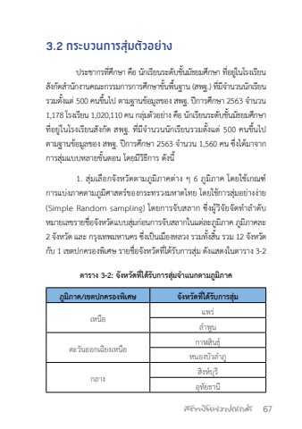 673.2 %u0e01%u0e23%u0e30%u0e1a%u0e27%u0e19%u0e01%u0e32%u0e23%u0e2a%u0e38%u0e48%u0e21%u0e15%u0e31%u0e27%u0e2d%u0e22%u0e48%u0e32%u0e07%u0e1b%u0e23%u0e30%u0e0a%u0e32%u0e01%u0e23%u0e17%u0e35%u0e48%u0e28%u0e36%u0e01%u0e29%u0e32 %u0e04%u0e37%u0e2d %u0e19%u0e31%u0e01%u0e40%u0e23%u0e35%u0e22%u0e19%u0e23%u0e30%u0e14%u0e31%u0e1a%u0e0a%u0e31%u0e49%u0e19%u0e21%u0e31%u0e18%u0e22%u0e21%u0e28%u0e36%u0e01%u0e29%u0e32 %u0e17%u0e35%u0e48%u0e2d%u0e22%u0e39%u0e48%u0e43%u0e19%u0e42%u0e23%u0e07%u0e40%u0e23%u0e35%u0e22%u0e19%u0e2a%u0e31%u0e07%u0e01%u0e31%u0e14%u0e2a%ufffd%u0e33%u0e19%u0e31%u0e01%u0e07%u0e32%u0e19%u0e04%u0e13%u0e30%u0e01%u0e23%u0e23%u0e21%u0e01%u0e32%u0e23%u0e01%u0e32%u0e23%u0e28%u0e36%u0e01%u0e29%u0e32%u0e02%u0e31%u0e49%u0e19%u0e1e%u0e37%u0e49%u0e19%u0e10%u0e32%u0e19 (%u0e2a%u0e1e%u0e10.) %u0e17%u0e35%u0e48%u0e21%u0e35%u0e08%ufffd%u0e33%u0e19%u0e27%u0e19%u0e19%u0e31%u0e01%u0e40%u0e23%u0e35%u0e22%u0e19%u0e23%u0e27%u0e21%u0e15%u0e31%u0e49%u0e07%u0e41%u0e15%u0e48 500 %u0e04%u0e19%u0e02%u0e36%u0e49%u0e19%u0e44%u0e1b %u0e15%u0e32%u0e21%u0e10%u0e32%u0e19%u0e02%u0e49%u0e2d%u0e21%u0e39%u0e25%u0e02%u0e2d%u0e07 %u0e2a%u0e1e%u0e10. %u0e1b%u0e35%u0e01%u0e32%u0e23%u0e28%u0e36%u0e01%u0e29%u0e32 2563 %u0e08%ufffd%u0e33%u0e19%u0e27%u0e19 1,178 %u0e42%u0e23%u0e07%u0e40%u0e23%u0e35%u0e22%u0e19 1,020,110 %u0e04%u0e19 %u0e01%u0e25%u0e38%u0e48%u0e21%u0e15%u0e31%u0e27%u0e2d%u0e22%u0e48%u0e32%u0e07 %u0e04%u0e37%u0e2d %u0e19%u0e31%u0e01%u0e40%u0e23%u0e35%u0e22%u0e19%u0e23%u0e30%u0e14%u0e31%u0e1a%u0e0a%u0e31%u0e49%u0e19%u0e21%u0e31%u0e18%u0e22%u0e21%u0e28%u0e36%u0e01%u0e29%u0e32 %u0e17%u0e35%u0e48%u0e2d%u0e22%u0e39%u0e48%u0e43%u0e19%u0e42%u0e23%u0e07%u0e40%u0e23%u0e35%u0e22%u0e19%u0e2a%u0e31%u0e07%u0e01%u0e31%u0e14 %u0e2a%u0e1e%u0e10. %u0e17%u0e35%u0e48%u0e21%u0e35%u0e08%ufffd%u0e33%u0e19%u0e27%u0e19%u0e19%u0e31%u0e01%u0e40%u0e23%u0e35%u0e22%u0e19%u0e23%u0e27%u0e21%u0e15%u0e31%u0e49%u0e07%u0e41%u0e15%u0e48 500 %u0e04%u0e19%u0e02%u0e36%u0e49%u0e19%u0e44%u0e1b %u0e15%u0e32%u0e21%u0e10%u0e32%u0e19%u0e02%u0e49%u0e2d%u0e21%u0e39%u0e25%u0e02%u0e2d%u0e07 %u0e2a%u0e1e%u0e10. %u0e1b%u0e35%u0e01%u0e32%u0e23%u0e28%u0e36%u0e01%u0e29%u0e32 2563 %u0e08%ufffd%u0e33%u0e19%u0e27%u0e19 1,560 %u0e04%u0e19 %u0e0b%u0e36%u0e48%u0e07%u0e44%u0e14%u0e49%u0e21%u0e32%u0e08%u0e32%u0e01%u0e01%u0e32%u0e23%u0e2a%u0e38%u0e48%u0e21%u0e41%u0e1a%u0e1a%u0e2b%u0e25%u0e32%u0e22%u0e02%u0e31%u0e49%u0e19%u0e15%u0e2d%u0e19 %u0e42%u0e14%u0e22%u0e21%u0e35%u0e27%u0e34%u0e18%u0e35%u0e01%u0e32%u0e23 %u0e14%u0e31%u0e07%u0e19%u0e35%u0e491. %u0e2a%u0e38%u0e48%u0e21%u0e40%u0e25%u0e37%u0e2d%u0e01%u0e08%u0e31%u0e07%u0e2b%u0e27%u0e31%u0e14%u0e15%u0e32%u0e21%u0e20%u0e39%u0e21%u0e34%u0e20%u0e32%u0e04%u0e15%u0e48%u0e32%u0e07 %u0e46 6 %u0e20%u0e39%u0e21%u0e34%u0e20%u0e32%u0e04 %u0e42%u0e14%u0e22%u0e43%u0e0a%u0e49%u0e40%u0e01%u0e13%u0e11%u0e4c%u0e01%u0e32%u0e23%u0e41%u0e1a%u0e48%u0e07%u0e20%u0e32%u0e04%u0e15%u0e32%u0e21%u0e20%u0e39%u0e21%u0e34%u0e28%u0e32%u0e2a%u0e15%u0e23%u0e4c%u0e02%u0e2d%u0e07%u0e01%u0e23%u0e30%u0e17%u0e23%u0e27%u0e07%u0e21%u0e2b%u0e32%u0e14%u0e44%u0e17%u0e22 %u0e42%u0e14%u0e22%u0e43%u0e0a%u0e49%u0e01%u0e32%u0e23%u0e2a%u0e38%u0e48%u0e21%u0e2d%u0e22%u0e48%u0e32%u0e07%u0e07%u0e48%u0e32%u0e22 (Simple Random sampling) %u0e42%u0e14%u0e22%u0e01%u0e32%u0e23%u0e08%u0e31%u0e1a%u0e2a%u0e25%u0e32%u0e01 %u0e0b%u0e36%u0e48%u0e07%u0e1c%u0e39%u0e49%u0e27%u0e34%u0e08%u0e31%u0e22%u0e08%u0e31%u0e14%u0e17%ufffd%u0e33%u0e25%ufffd%u0e33%u0e14%u0e31%u0e1a%u0e2b%u0e21%u0e32%u0e22%u0e40%u0e25%u0e02%u0e23%u0e32%u0e22%u0e0a%u0e37%u0e48%u0e2d%u0e08%u0e31%u0e07%u0e2b%u0e27%u0e31%u0e14%u0e41%u0e1a%u0e1a%u0e2a%u0e38%u0e48%u0e21%u0e01%u0e48%u0e2d%u0e19%u0e01%u0e32%u0e23%u0e08%u0e31%u0e1a%u0e2a%u0e25%u0e32%u0e01%u0e43%u0e19%u0e41%u0e15%u0e48%u0e25%u0e30%u0e20%u0e39%u0e21%u0e34%u0e20%u0e32%u0e04 %u0e20%u0e39%u0e21%u0e34%u0e20%u0e32%u0e04%u0e25%u0e30 2 %u0e08%u0e31%u0e07%u0e2b%u0e27%u0e31%u0e14 %u0e41%u0e25%u0e30 %u0e01%u0e23%u0e38%u0e07%u0e40%u0e17%u0e1e%u0e21%u0e2b%u0e32%u0e19%u0e04%u0e23 %u0e0b%u0e36%u0e48%u0e07%u0e40%u0e1b%u0e47%u0e19%u0e40%u0e21%u0e37%u0e2d%u0e07%u0e2b%u0e25%u0e27%u0e07 %u0e23%u0e27%u0e21%u0e17%u0e31%u0e49%u0e07%u0e2a%u0e34%u0e49%u0e19 %u0e23%u0e27%u0e21 12 %u0e08%u0e31%u0e07%u0e2b%u0e27%u0e31%u0e14 %u0e01%u0e31%u0e1a 1 %u0e40%u0e02%u0e15%u0e1b%u0e01%u0e04%u0e23%u0e2d%u0e07%u0e1e%u0e34%u0e40%u0e28%u0e29 %u0e23%u0e32%u0e22%u0e0a%u0e37%u0e48%u0e2d%u0e08%u0e31%u0e07%u0e2b%u0e27%u0e31%u0e14%u0e17%u0e35%u0e48%u0e44%u0e14%u0e49%u0e23%u0e31%u0e1a%u0e01%u0e32%u0e23%u0e2a%u0e38%u0e48%u0e21 %u0e14%u0e31%u0e07%u0e41%u0e2a%u0e14%u0e07%u0e43%u0e19%u0e15%u0e32%u0e23%u0e32%u0e07 3-2%u0e15%u0e32%u0e23%u0e32%u0e07 3-2: %u0e08%u0e31%u0e07%u0e2b%u0e27%u0e31%u0e14%u0e17%u0e35%u0e48%u0e44%u0e14%u0e49%u0e23%u0e31%u0e1a%u0e01%u0e32%u0e23%u0e2a%u0e38%u0e48%u0e21%u0e08%ufffd%u0e33%u0e41%u0e19%u0e01%u0e15%u0e32%u0e21%u0e20%u0e39%u0e21%u0e34%u0e20%u0e32%u0e04%u0e20%u0e39%u0e21%u0e34%u0e20%u0e32%u0e04/%u0e40%u0e02%u0e15%u0e1b%u0e01%u0e04%u0e23%u0e2d%u0e07%u0e1e%u0e34%u0e40%u0e28%u0e29 %u0e08%u0e31%u0e07%u0e2b%u0e27%u0e31%u0e14%u0e17%u0e35%u0e48%u0e44%u0e14%u0e49%u0e23%u0e31%u0e1a%u0e01%u0e32%u0e23%u0e2a%u0e38%u0e48%u0e21%u0e40%u0e2b%u0e19%u0e37%u0e2d%u0e41%u0e1e%u0e23%u0e48%u0e25%ufffd%u0e33%u0e1e%u0e39%u0e19%u0e15%u0e30%u0e27%u0e31%u0e19%u0e2d%u0e2d%u0e01%u0e40%u0e09%u0e35%u0e22%u0e07%u0e40%u0e2b%u0e19%u0e37%u0e2d %u0e01%u0e32%u0e2c%u0e2a%u0e34%u0e19%u0e18%u0e38%u0e4c%u0e2b%u0e19%u0e2d%u0e07%u0e1a%u0e31%u0e27%u0e25%ufffd%u0e33%u0e20%u0e39%u0e01%u0e25%u0e32%u0e07%u0e2a%u0e34%u0e07%u0e2b%u0e4c%u0e1a%u0e38%u0e23%u0e35%u0e2d%u0e38%u0e17%u0e31%u0e22%u0e18%u0e32%u0e19%u0e35