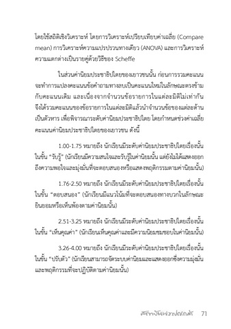 71%u0e42%u0e14%u0e22%u0e43%u0e0a%u0e49%u0e2a%u0e16%u0e34%u0e15%u0e34%u0e40%u0e0a%u0e34%u0e07%u0e27%u0e34%u0e40%u0e04%u0e23%u0e32%u0e30%u0e2b%u0e4c %u0e42%u0e14%u0e22%u0e01%u0e32%u0e23%u0e27%u0e34%u0e40%u0e04%u0e23%u0e32%u0e30%u0e2b%u0e4c%u0e40%u0e1b%u0e23%u0e35%u0e22%u0e1a%u0e40%u0e17%u0e35%u0e22%u0e1a%u0e04%u0e48%u0e32%u0e40%u0e09%u0e25%u0e35%u0e48%u0e22 (Compare mean) %u0e01%u0e32%u0e23%u0e27%u0e34%u0e40%u0e04%u0e23%u0e32%u0e30%u0e2b%u0e4c%u0e04%u0e27%u0e32%u0e21%u0e41%u0e1b%u0e23%u0e1b%u0e23%u0e27%u0e19%u0e17%u0e32%u0e07%u0e40%u0e14%u0e35%u0e22%u0e27 (ANOVA) %u0e41%u0e25%u0e30%u0e01%u0e32%u0e23%u0e27%u0e34%u0e40%u0e04%u0e23%u0e32%u0e30%u0e2b%u0e4c%u0e04%u0e27%u0e32%u0e21%u0e41%u0e15%u0e01%u0e15%u0e48%u0e32%u0e07%u0e40%u0e1b%u0e47%u0e19%u0e23%u0e32%u0e22%u0e04%u0e39%u0e48%u0e14%u0e49%u0e27%u0e22%u0e27%u0e34%u0e18%u0e35%u0e02%u0e2d%u0e07 Scheffe%u0e43%u0e19%u0e2a%u0e48%u0e27%u0e19%u0e04%u0e48%u0e32%u0e19%u0e34%u0e22%u0e21%u0e1b%u0e23%u0e30%u0e0a%u0e32%u0e18%u0e34%u0e1b%u0e44%u0e15%u0e22%u0e02%u0e2d%u0e07%u0e40%u0e22%u0e32%u0e27%u0e0a%u0e19%u0e19%u0e31%u0e49%u0e19 %u0e01%u0e48%u0e2d%u0e19%u0e01%u0e32%u0e23%u0e23%u0e27%u0e21%u0e04%u0e30%u0e41%u0e19%u0e19%u0e08%u0e30%u0e17%ufffd%u0e33%u0e01%u0e32%u0e23%u0e41%u0e1b%u0e25%u0e07%u0e04%u0e30%u0e41%u0e19%u0e19%u0e02%u0e49%u0e2d%u0e04%ufffd%u0e33%u0e16%u0e32%u0e21%u0e17%u0e32%u0e07%u0e25%u0e1a%u0e40%u0e1b%u0e47%u0e19%u0e04%u0e30%u0e41%u0e19%u0e19%u0e43%u0e2b%u0e21%u0e48%u0e43%u0e19%u0e25%u0e31%u0e01%u0e29%u0e13%u0e30%u0e15%u0e23%u0e07%u0e02%u0e49%u0e32%u0e21%u0e01%u0e31%u0e1a%u0e04%u0e30%u0e41%u0e19%u0e19%u0e40%u0e14%u0e34%u0e21 %u0e41%u0e25%u0e30%u0e40%u0e19%u0e37%u0e48%u0e2d%u0e07%u0e08%u0e32%u0e01%u0e08%ufffd%u0e33%u0e19%u0e27%u0e19%u0e02%u0e49%u0e2d%u0e23%u0e32%u0e22%u0e01%u0e32%u0e23%u0e43%u0e19%u0e41%u0e15%u0e48%u0e25%u0e30%u0e21%u0e34%u0e15%u0e34%u0e44%u0e21%u0e48%u0e40%u0e17%u0e48%u0e32%u0e01%u0e31%u0e19 %u0e08%u0e36%u0e07%u0e44%u0e14%u0e49%u0e23%u0e27%u0e21%u0e04%u0e30%u0e41%u0e19%u0e19%u0e02%u0e2d%u0e07%u0e02%u0e49%u0e2d%u0e23%u0e32%u0e22%u0e01%u0e32%u0e23%u0e43%u0e19%u0e41%u0e15%u0e48%u0e25%u0e30%u0e21%u0e34%u0e15%u0e34%u0e41%u0e25%u0e49%u0e27%u0e19%ufffd%u0e33%u0e08%ufffd%u0e33%u0e19%u0e27%u0e19%u0e02%u0e49%u0e2d%u0e02%u0e2d%u0e07%u0e41%u0e15%u0e48%u0e25%u0e30%u0e14%u0e49%u0e32%u0e19%u0e40%u0e1b%u0e47%u0e19%u0e15%u0e31%u0e27%u0e2b%u0e32%u0e23 %u0e40%u0e1e%u0e37%u0e48%u0e2d%u0e1e%u0e34%u0e08%u0e32%u0e23%u0e13%u0e32%u0e23%u0e30%u0e14%u0e31%u0e1a%u0e04%u0e48%u0e32%u0e19%u0e34%u0e22%u0e21%u0e1b%u0e23%u0e30%u0e0a%u0e32%u0e18%u0e34%u0e1b%u0e44%u0e15%u0e22 %u0e42%u0e14%u0e22%u0e01%ufffd%u0e33%u0e2b%u0e19%u0e14%u0e0a%u0e48%u0e27%u0e07%u0e04%u0e48%u0e32%u0e40%u0e09%u0e25%u0e35%u0e48%u0e22%u0e04%u0e30%u0e41%u0e19%u0e19%u0e04%u0e48%u0e32%u0e19%u0e34%u0e22%u0e21%u0e1b%u0e23%u0e30%u0e0a%u0e32%u0e18%u0e34%u0e1b%u0e44%u0e15%u0e22%u0e02%u0e2d%u0e07%u0e40%u0e22%u0e32%u0e27%u0e0a%u0e19 %u0e14%u0e31%u0e07%u0e19%u0e35%u0e491.00-1.75 %u0e2b%u0e21%u0e32%u0e22%u0e16%u0e36%u0e07 %u0e19%u0e31%u0e01%u0e40%u0e23%u0e35%u0e22%u0e19%u0e21%u0e35%u0e23%u0e30%u0e14%u0e31%u0e1a%u0e04%u0e48%u0e32%u0e19%u0e34%u0e22%u0e21%u0e1b%u0e23%u0e30%u0e0a%u0e32%u0e18%u0e34%u0e1b%u0e44%u0e15%u0e22%u0e40%u0e23%u0e37%u0e48%u0e2d%u0e07%u0e19%u0e31%u0e49%u0e19%u0e43%u0e19%u0e02%u0e31%u0e49%u0e19 %u201c%u0e23%u0e31%u0e1a%u0e23%u0e39%u0e49%u201d (%u0e19%u0e31%u0e01%u0e40%u0e23%u0e35%u0e22%u0e19%u0e21%u0e35%u0e04%u0e27%u0e32%u0e21%u0e2a%u0e19%u0e43%u0e08%u0e41%u0e25%u0e30%u0e23%u0e31%u0e1a%u0e23%u0e39%u0e49%u0e43%u0e19%u0e04%u0e48%u0e32%u0e19%u0e34%u0e22%u0e21%u0e19%u0e31%u0e49%u0e19 %u0e41%u0e15%u0e48%u0e22%u0e31%u0e07%u0e44%u0e21%u0e48%u0e44%u0e14%u0e49%u0e41%u0e2a%u0e14%u0e07%u0e2d%u0e2d%u0e01%u0e16%u0e36%u0e07%u0e04%u0e27%u0e32%u0e21%u0e1e%u0e2d%u0e43%u0e08%u0e41%u0e25%u0e30%u0e21%u0e38%u0e48%u0e07%u0e21%u0e31%u0e48%u0e19%u0e17%u0e35%u0e48%u0e08%u0e30%u0e15%u0e2d%u0e1a%u0e2a%u0e19%u0e2d%u0e07%u0e2b%u0e23%u0e37%u0e2d%u0e41%u0e2a%u0e14%u0e07%u0e1e%u0e24%u0e15%u0e34%u0e01%u0e23%u0e23%u0e21%u0e15%u0e32%u0e21%u0e04%u0e48%u0e32%u0e19%u0e34%u0e22%u0e21%u0e19%u0e31%u0e49%u0e19)1.76-2.50 %u0e2b%u0e21%u0e32%u0e22%u0e16%u0e36%u0e07 %u0e19%u0e31%u0e01%u0e40%u0e23%u0e35%u0e22%u0e19%u0e21%u0e35%u0e23%u0e30%u0e14%u0e31%u0e1a%u0e04%u0e48%u0e32%u0e19%u0e34%u0e22%u0e21%u0e1b%u0e23%u0e30%u0e0a%u0e32%u0e18%u0e34%u0e1b%u0e44%u0e15%u0e22%u0e40%u0e23%u0e37%u0e48%u0e2d%u0e07%u0e19%u0e31%u0e49%u0e19%u0e43%u0e19%u0e02%u0e31%u0e49%u0e19 %u201c%u0e15%u0e2d%u0e1a%u0e2a%u0e19%u0e2d%u0e07%u201d (%u0e19%u0e31%u0e01%u0e40%u0e23%u0e35%u0e22%u0e19%u0e21%u0e35%u0e41%u0e19%u0e27%u0e42%u0e19%u0e49%u0e21%u0e17%u0e35%u0e48%u0e08%u0e30%u0e15%u0e2d%u0e1a%u0e2a%u0e19%u0e2d%u0e07%u0e17%u0e32%u0e07%u0e1a%u0e27%u0e01%u0e43%u0e19%u0e25%u0e31%u0e01%u0e29%u0e13%u0e30%u0e22%u0e34%u0e19%u0e22%u0e2d%u0e21%u0e2b%u0e23%u0e37%u0e2d%u0e40%u0e2b%u0e47%u0e19%u0e1e%u0e49%u0e2d%u0e07%u0e15%u0e32%u0e21%u0e04%u0e48%u0e32%u0e19%u0e34%u0e22%u0e21%u0e19%u0e31%u0e49%u0e19)2.51-3.25 %u0e2b%u0e21%u0e32%u0e22%u0e16%u0e36%u0e07 %u0e19%u0e31%u0e01%u0e40%u0e23%u0e35%u0e22%u0e19%u0e21%u0e35%u0e23%u0e30%u0e14%u0e31%u0e1a%u0e04%u0e48%u0e32%u0e19%u0e34%u0e22%u0e21%u0e1b%u0e23%u0e30%u0e0a%u0e32%u0e18%u0e34%u0e1b%u0e44%u0e15%u0e22%u0e40%u0e23%u0e37%u0e48%u0e2d%u0e07%u0e19%u0e31%u0e49%u0e19%u0e43%u0e19%u0e02%u0e31%u0e49%u0e19 %u201c%u0e40%u0e2b%u0e47%u0e19%u0e04%u0e38%u0e13%u0e04%u0e48%u0e32%u201d (%u0e19%u0e31%u0e01%u0e40%u0e23%u0e35%u0e22%u0e19%u0e40%u0e2b%u0e47%u0e19%u0e04%u0e38%u0e13%u0e04%u0e48%u0e32%u0e41%u0e25%u0e30%u0e21%u0e35%u0e04%u0e27%u0e32%u0e21%u0e19%u0e34%u0e22%u0e21%u0e0a%u0e21%u0e0a%u0e2d%u0e1a%u0e43%u0e19%u0e04%u0e48%u0e32%u0e19%u0e34%u0e22%u0e21%u0e19%u0e31%u0e49%u0e19)3.26-4.00 %u0e2b%u0e21%u0e32%u0e22%u0e16%u0e36%u0e07 %u0e19%u0e31%u0e01%u0e40%u0e23%u0e35%u0e22%u0e19%u0e21%u0e35%u0e23%u0e30%u0e14%u0e31%u0e1a%u0e04%u0e48%u0e32%u0e19%u0e34%u0e22%u0e21%u0e1b%u0e23%u0e30%u0e0a%u0e32%u0e18%u0e34%u0e1b%u0e44%u0e15%u0e22%u0e40%u0e23%u0e37%u0e48%u0e2d%u0e07%u0e19%u0e31%u0e49%u0e19%u0e43%u0e19%u0e02%u0e31%u0e49%u0e19 %u201c%u0e1b%u0e23%u0e31%u0e1a%u
