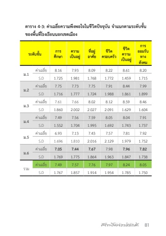 81%u0e15%u0e32%u0e23%u0e32%u0e07 4-3: %u0e04%u0e48%u0e32%u0e40%u0e09%u0e25%u0e35%u0e48%u0e22%u0e04%u0e27%u0e32%u0e21%u0e1e%u0e36%u0e07%u0e1e%u0e2d%u0e43%u0e08%u0e43%u0e19%u0e0a%u0e35%u0e27%u0e34%u0e15%u0e1b%u0e31%u0e08%u0e08%u0e38%u0e1a%u0e31%u0e19 %u0e08%ufffd%u0e33%u0e41%u0e19%u0e01%u0e15%u0e32%u0e21%u0e23%u0e30%u0e14%u0e31%u0e1a%u0e0a%u0e31%u0e49%u0e19 %u0e02%u0e2d%u0e07%u0e1e%u0e37%u0e49%u0e19%u0e17%u0e35%u0e48%u0e42%u0e23%u0e07%u0e40%u0e23%u0e35%u0e22%u0e19%u0e19%u0e2d%u0e01%u0e40%u0e02%u0e15%u0e40%u0e21%u0e37%u0e2d%u0e07%u0e23%u0e30%u0e14%u0e31%u0e1a%u0e0a%u0e31%u0e49%u0e19 %u0e01%u0e32%u0e23%u0e28%u0e36%u0e01%u0e29%u0e32%u0e04%u0e27%u0e32%u0e21%u0e40%u0e1b%u0e47%u0e19%u0e2d%u0e22%u0e39%u0e48%u0e17%u0e35%u0e48%u0e2d%u0e22%u0e39%u0e48%u0e2d%u0e32%u0e28%u0e31%u0e22%u0e0a%u0e35%u0e27%u0e34%u0e15%u0e04%u0e23%u0e2d%u0e1a%u0e04%u0e23%u0e31%u0e27%u0e0a%u0e35%u0e27%u0e34%u0e15%u0e04%u0e27%u0e32%u0e21%u0e40%u0e1b%u0e47%u0e19%u0e2d%u0e22%u0e39%u0e48%u0e01%u0e32%u0e23%u0e22%u0e2d%u0e21%u0e23%u0e31%u0e1a%u0e17%u0e32%u0e07%u0e2a%u0e31%u0e07%u0e04%u0e21%u0e21.1%u0e04%u0e48%u0e32%u0e40%u0e09%u0e25%u0e35%u0e48%u0e22 8.16 7.93 8.09 8.22 8.61 8.20S.D 1.725 1.981 1.768 1.772 1.459 1.715%u0e21.2%u0e04%u0e48%u0e32%u0e40%u0e09%u0e25%u0e35%u0e48%u0e22 7.75 7.73 7.75 7.91 8.44 7.99S.D 1.716 1.777 1.724 1.988 1.861 1.899%u0e21.3%u0e04%u0e48%u0e32%u0e40%u0e09%u0e25%u0e35%u0e48%u0e22 7.61 7.66 8.02 8.12 8.59 8.46S.D 1.860 2.002 2.027 2.091 1.629 1.604%u0e21.4%u0e04%u0e48%u0e32%u0e40%u0e09%u0e25%u0e35%u0e48%u0e22 7.49 7.56 7.59 8.05 8.04 7.91S.D 1.552 1.704 1.995 1.692 1.743 1.737%u0e21.5%u0e04%u0e48%u0e32%u0e40%u0e09%u0e25%u0e35%u0e48%u0e22 6.93 7.13 7.43 7.57 7.81 7.92S.D 1.696 1.810 2.016 2.129 1.979 1.752%u0e21.6%u0e04%u0e48%u0e32%u0e40%u0e09%u0e25%u0e35%u0e48%u0e22 7.05 7.44 7.67 7.98 7.96 7.82S.D 1.769 1.775 1.864 1.963 1.847 1.738%u0e23%u0e27%u0e21%u0e04%u0e48%u0e32%u0e40%u0e09%u0e25%u0e35%u0e48%u0e22 7.49 7.57 7.76 7.97 8.24 8.05S.D 1.767 1.857 1.914 1.954 1.785 1.750